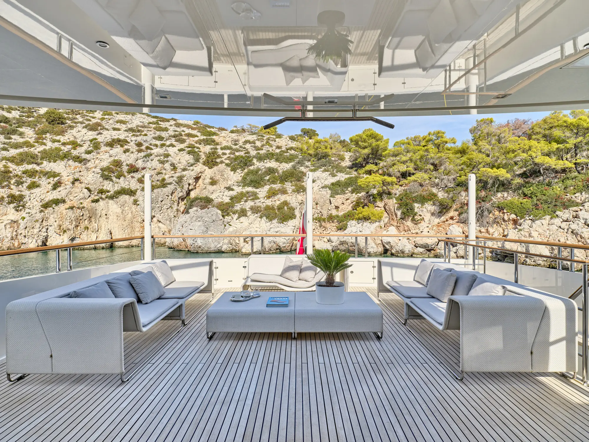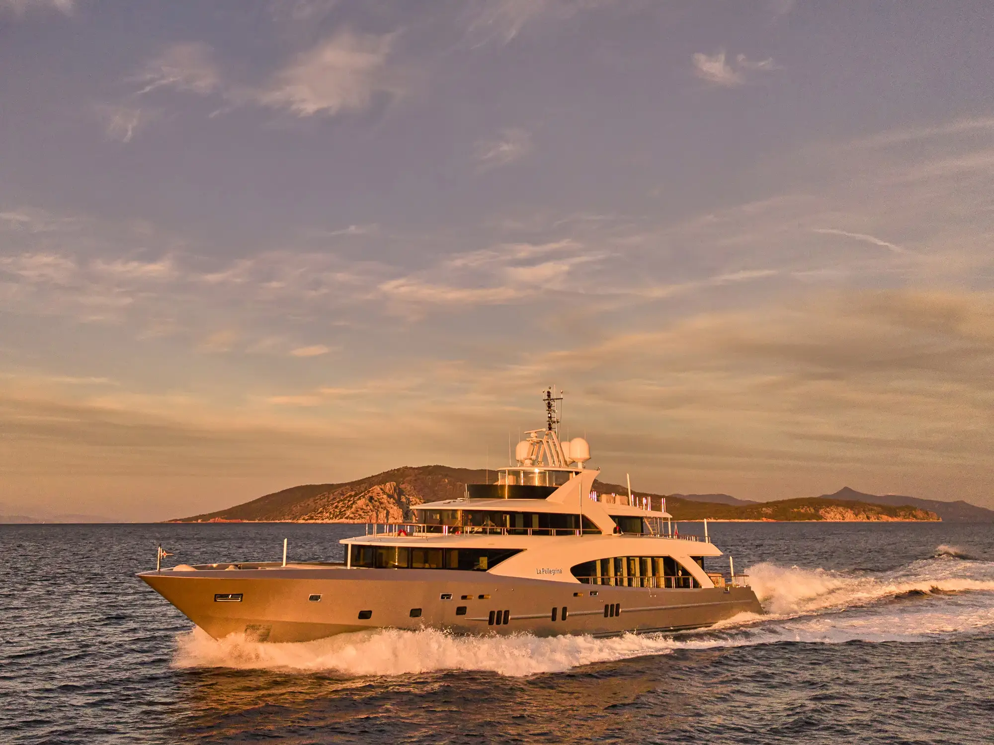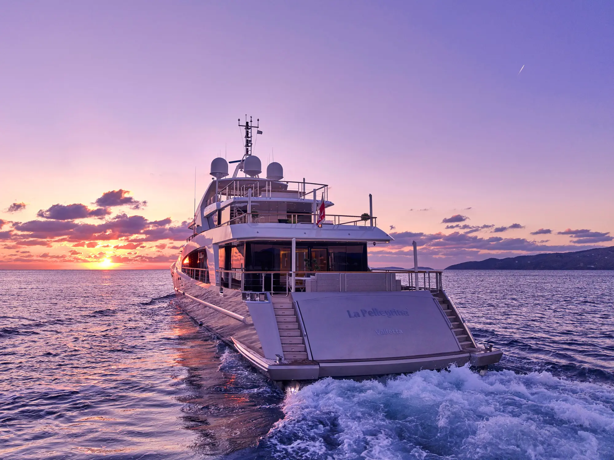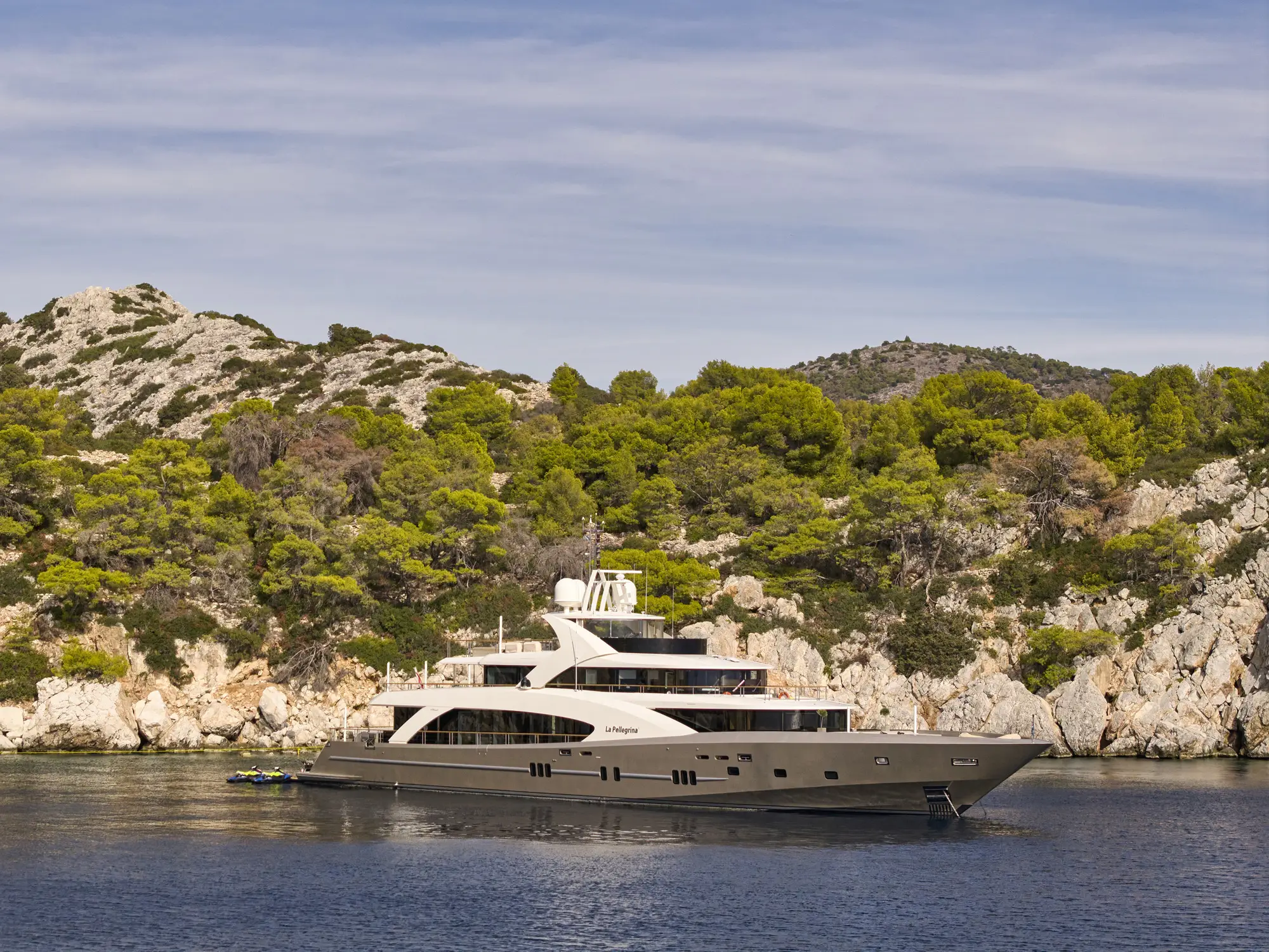 La Pellegrina 1 is a remarkable motor yacht, crafted by the renowned Chantier Naval Couach and delivered in 2012 as the flagship model of the Couach 164′ series. In 2024, she underwent an extensive refit, elevating her luxurious features, performance, and overall allure, ensuring she remains at the pinnacle of modern yachting excellence. With her striking design and exceptional craftsmanship, she stands as a true symbol of luxury and sophistication on the water. Her interior features an expansive, Open-plan main saloon that is bathed in natural light, courtesy of the full-height panoramic windows. The saloon is elegantly furnished with a generous seating area for relaxation, while a refined dining area, separated by a sleek island credenza, offers a perfect setting for formal dining. The main deck houses a distinguished VIP suite, designed to offer guests a 180-degree panoramic view, enhancing the sense of openness and connection with the surrounding environment. The Master Suite, located on the upper deck, is an epitome of comfort and style, featuring a full-beam layout and a private aft deck with a U-shaped lounging area—ideal for both private relaxation and entertaining in a serene setting. La Pellegrina 1 accommodates up to 12 guests in six luxurious cabins. The four guest suites located on the lower deck each provide exquisite comfort, with three offering queen-sized beds and one featuring twin beds, all designed to ensure a restful and refined atmosphere. The exterior spaces of the yacht are expansive and thoughtfully designed across three decks. The sundeck is an inviting area for sunbathing, equipped with comfortable sunbeds, and also features a spa jacuzzi for ultimate relaxation. A central round dining table and a wet bar on the sundeck create an ideal environment for alfresco dining and entertaining. The large swimming platform at the stern offers direct access to the water, providing a perfect spot for unwinding or engaging in water activities.