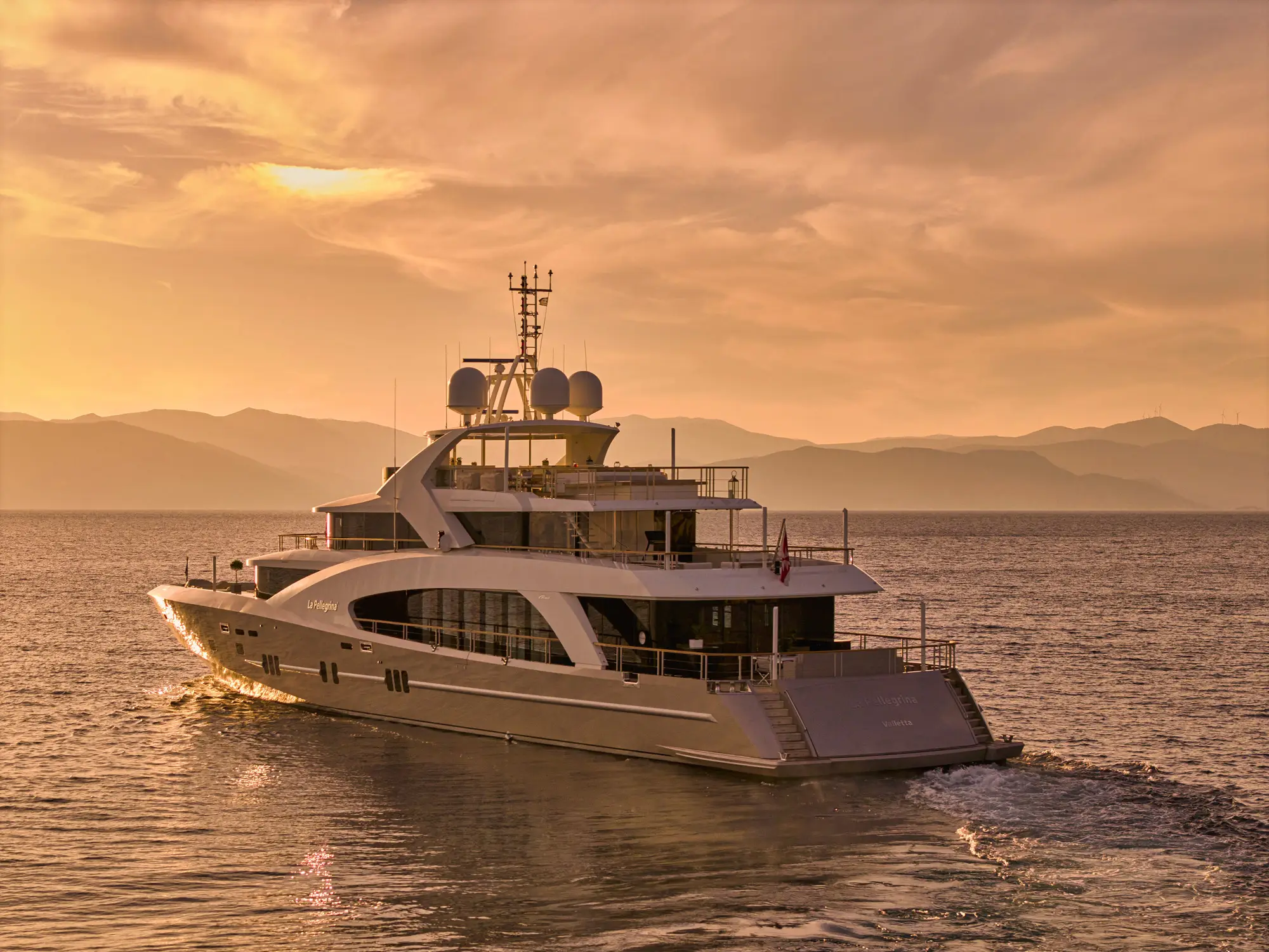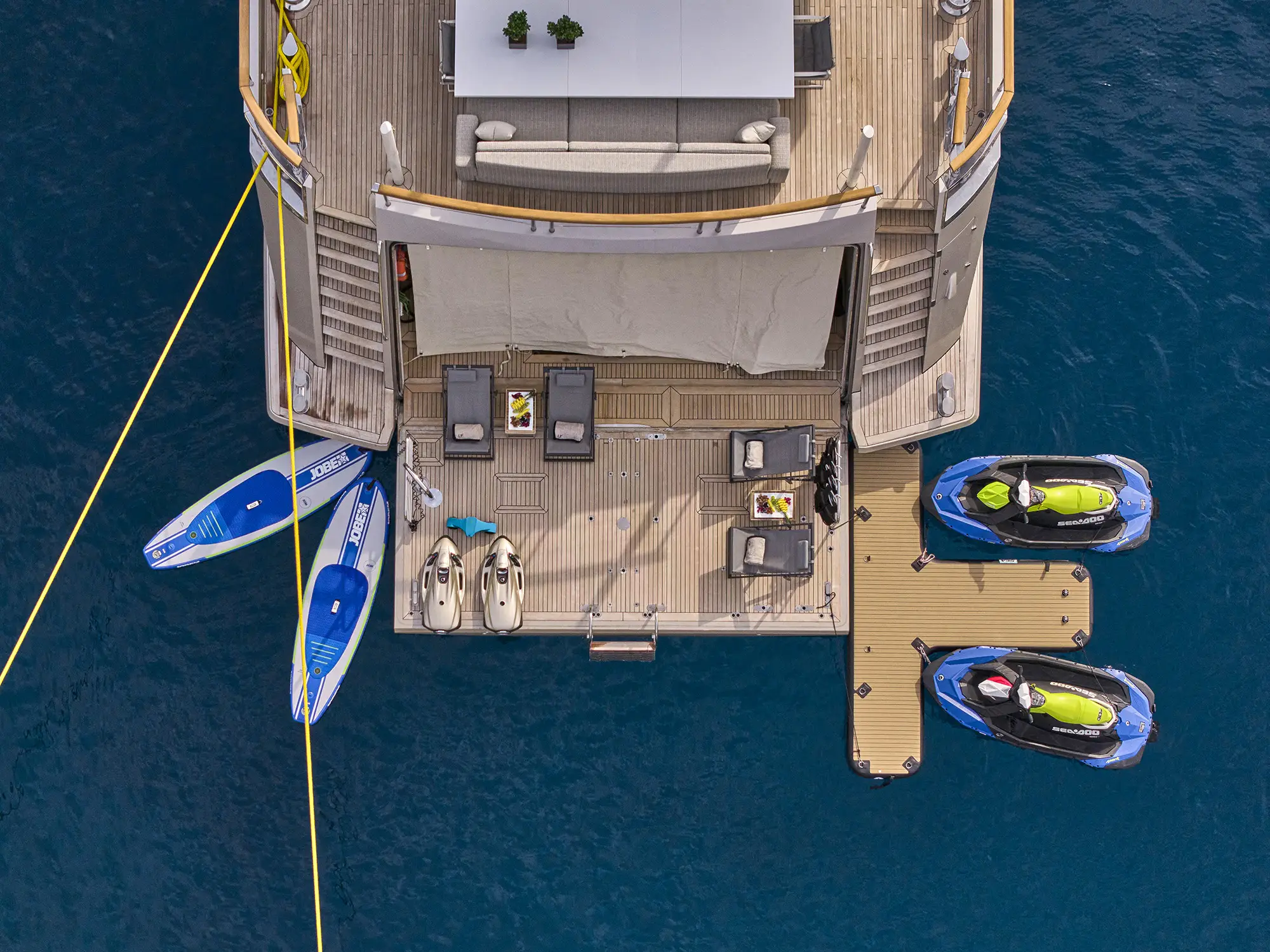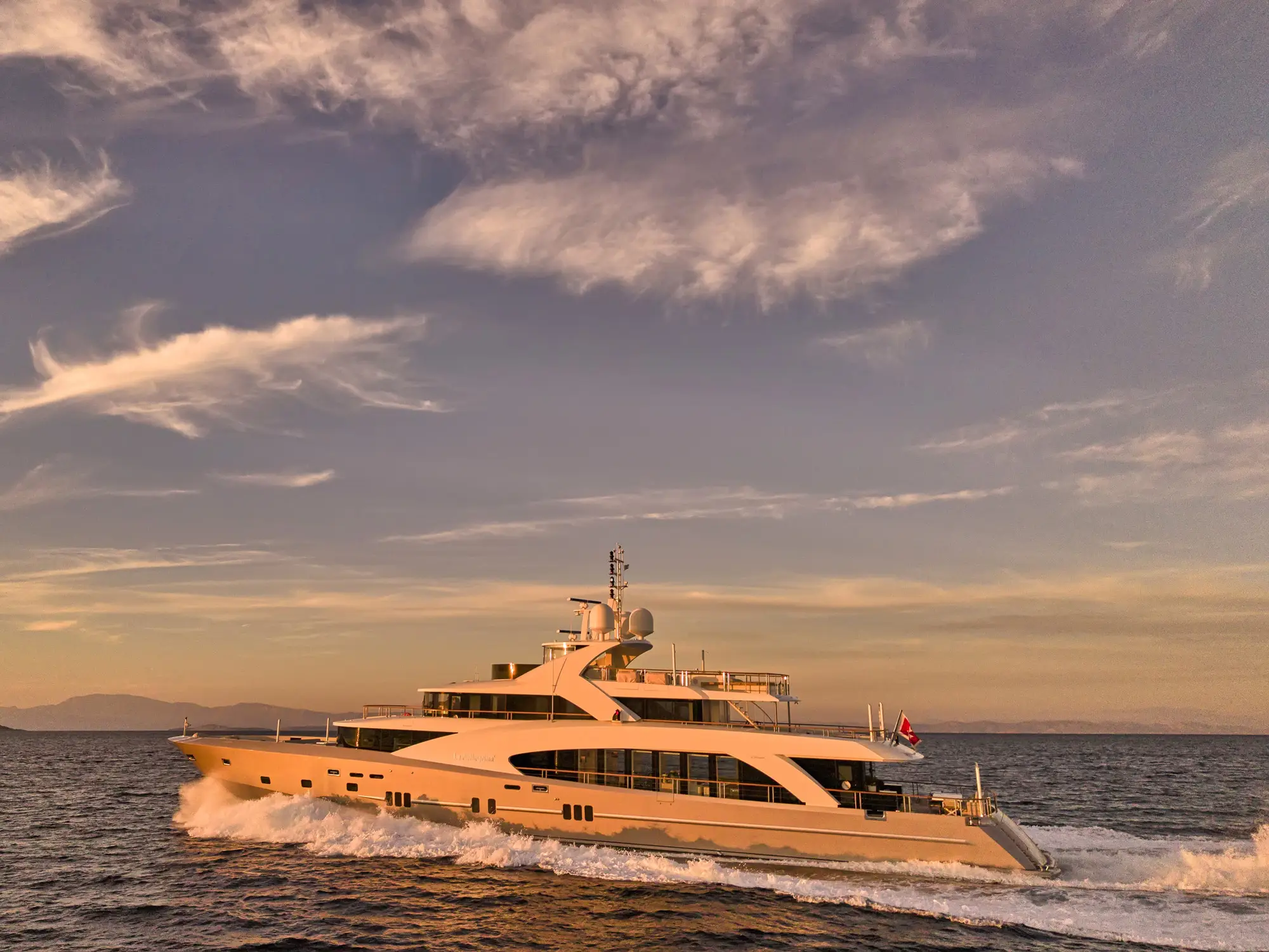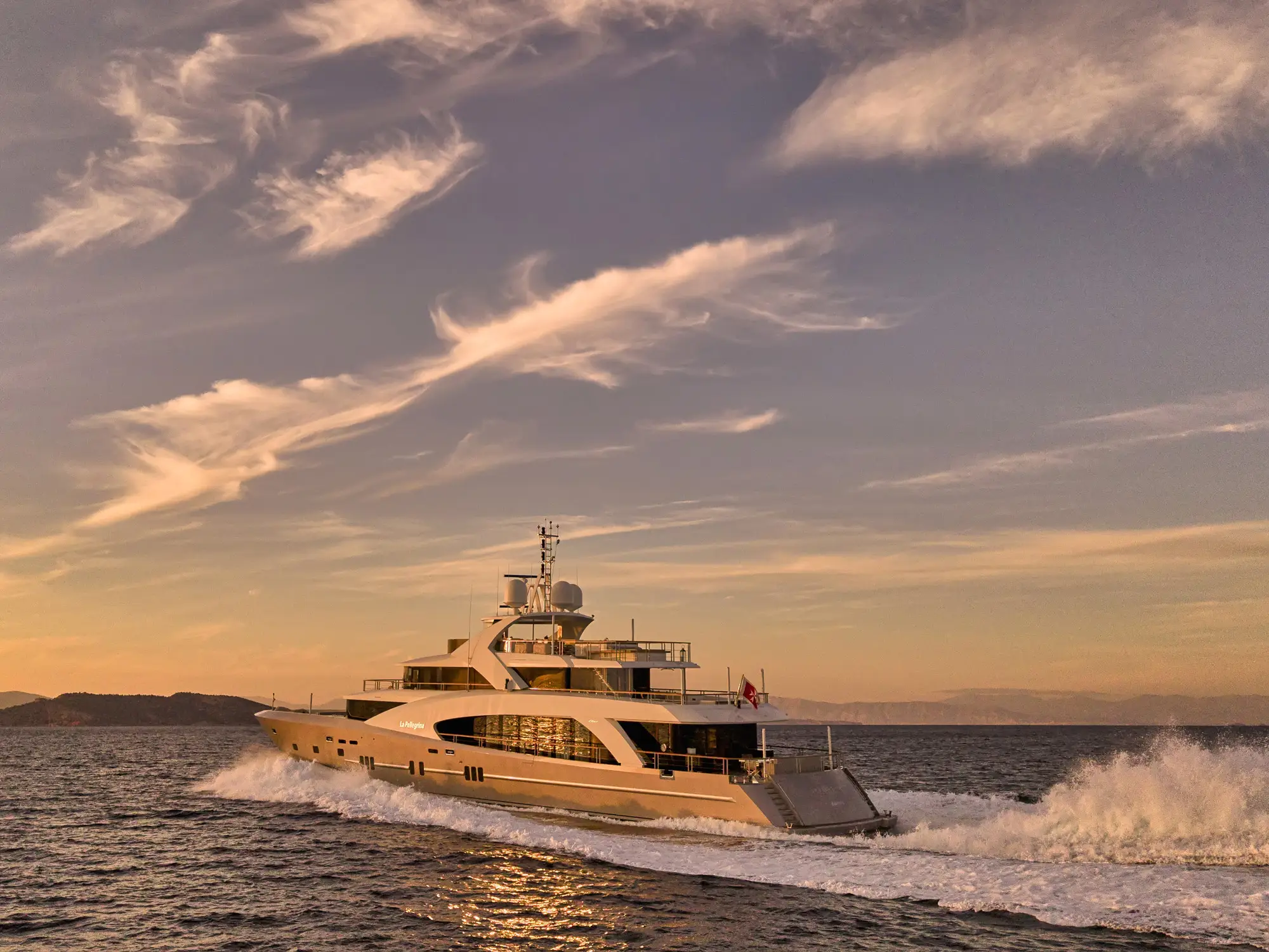 La Pellegrina 1 is a remarkable motor yacht, crafted by the renowned Chantier Naval Couach and delivered in 2012 as the flagship model of the Couach 164′ series. In 2024, she underwent an extensive refit, elevating her luxurious features, performance, and overall allure, ensuring she remains at the pinnacle of modern yachting excellence. With her striking design and exceptional craftsmanship, she stands as a true symbol of luxury and sophistication on the water. Her interior features an expansive, Open-plan main saloon that is bathed in natural light, courtesy of the full-height panoramic windows. The saloon is elegantly furnished with a generous seating area for relaxation, while a refined dining area, separated by a sleek island credenza, offers a perfect setting for formal dining. The main deck houses a distinguished VIP suite, designed to offer guests a 180-degree panoramic view, enhancing the sense of openness and connection with the surrounding environment. The Master Suite, located on the upper deck, is an epitome of comfort and style, featuring a full-beam layout and a private aft deck with a U-shaped lounging area—ideal for both private relaxation and entertaining in a serene setting. La Pellegrina 1 accommodates up to 12 guests in six luxurious cabins. The four guest suites located on the lower deck each provide exquisite comfort, with three offering queen-sized beds and one featuring twin beds, all designed to ensure a restful and refined atmosphere. The exterior spaces of the yacht are expansive and thoughtfully designed across three decks. The sundeck is an inviting area for sunbathing, equipped with comfortable sunbeds, and also features a spa jacuzzi for ultimate relaxation. A central round dining table and a wet bar on the sundeck create an ideal environment for alfresco dining and entertaining. The large swimming platform at the stern offers direct access to the water, providing a perfect spot for unwinding or engaging in water activities.