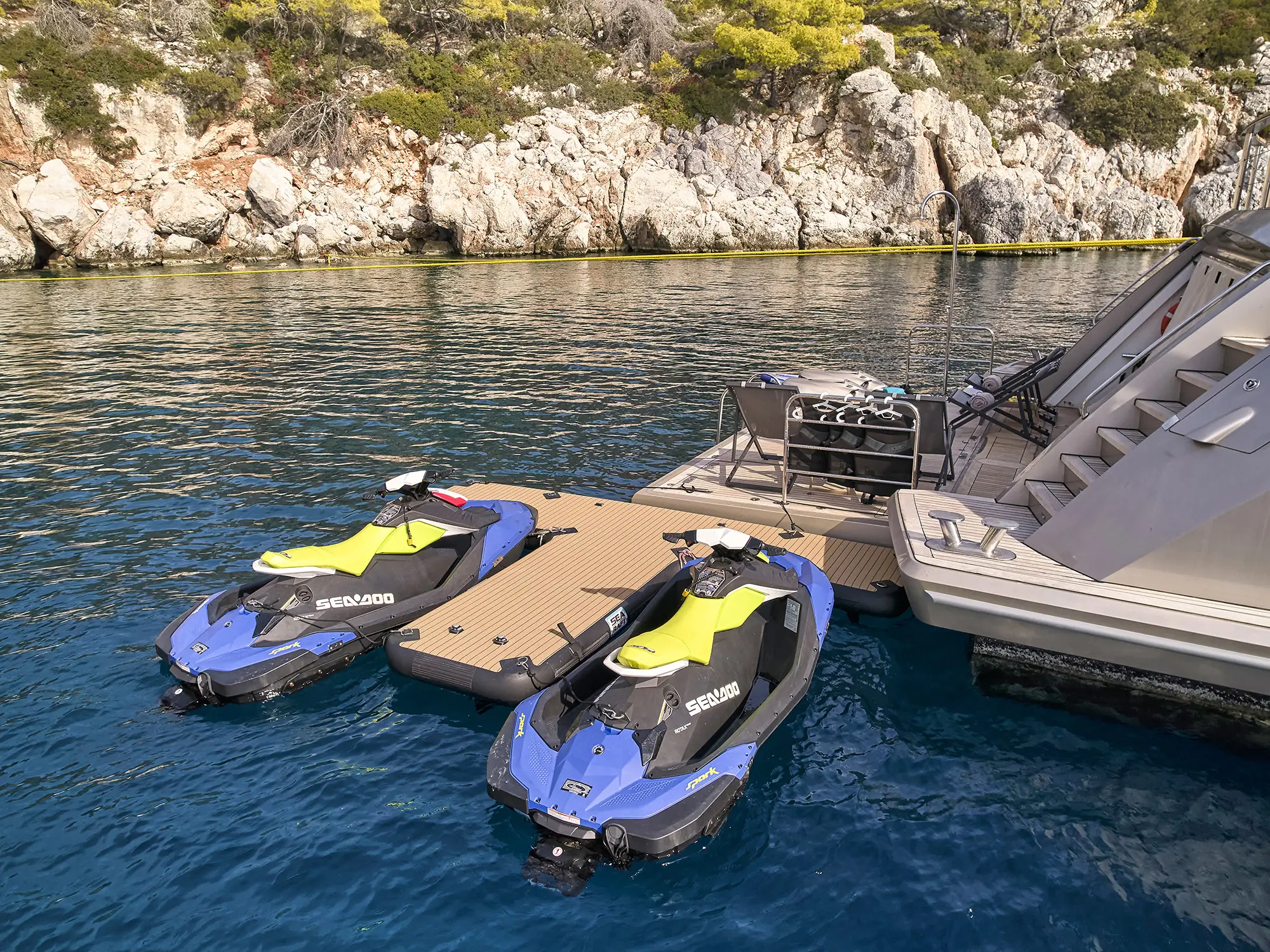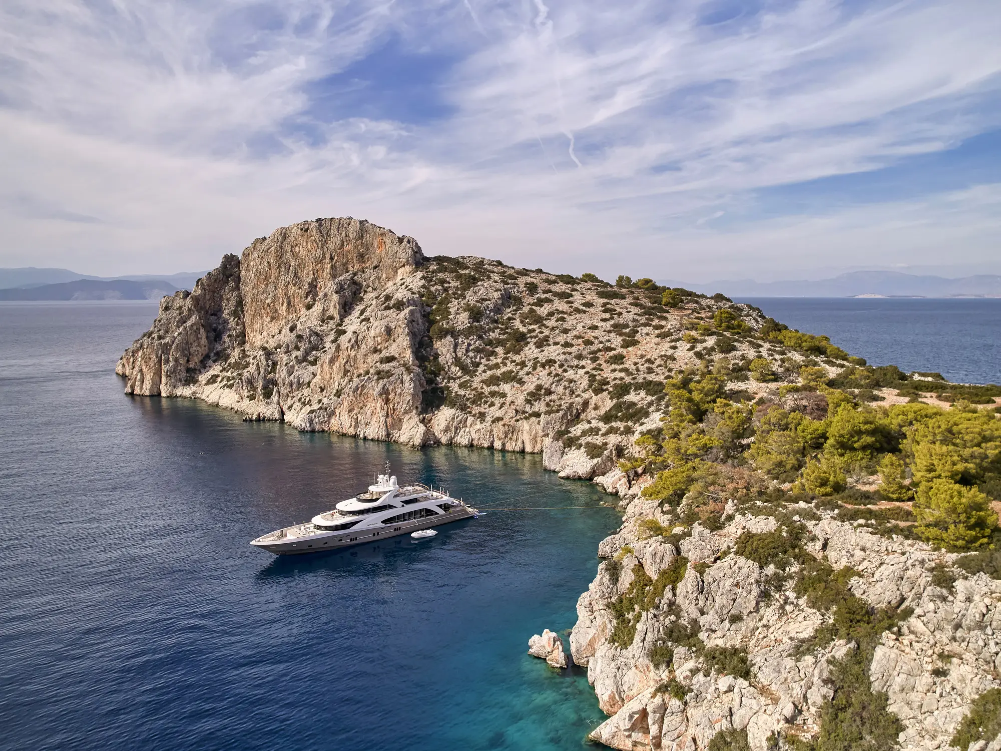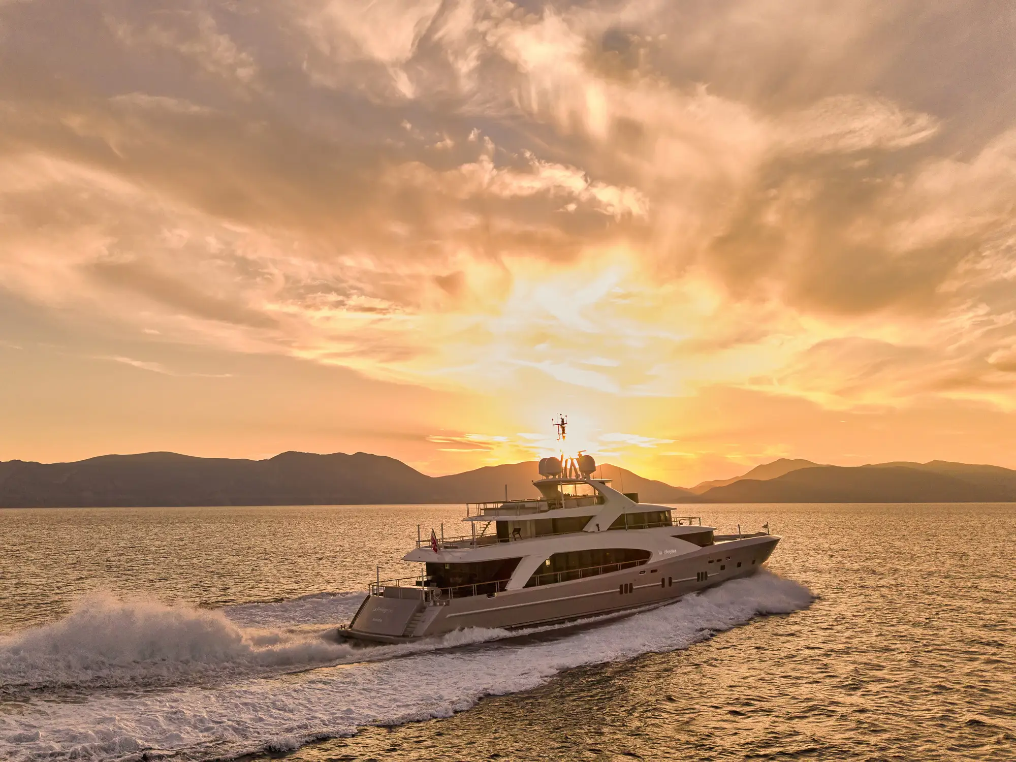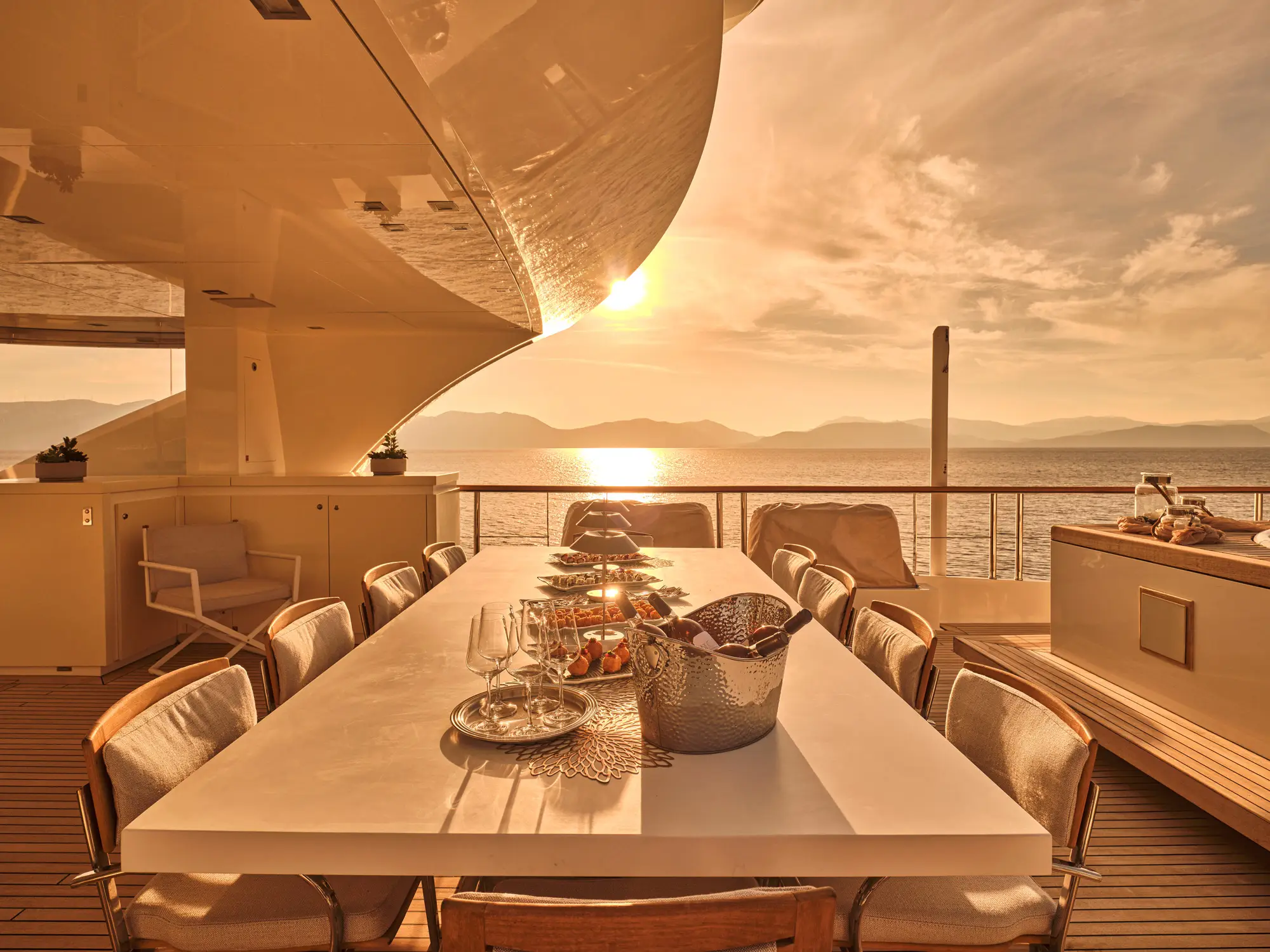 La Pellegrina 1 is a remarkable motor yacht, crafted by the renowned Chantier Naval Couach and delivered in 2012 as the flagship model of the Couach 164′ series. In 2024, she underwent an extensive refit, elevating her luxurious features, performance, and overall allure, ensuring she remains at the pinnacle of modern yachting excellence. With her striking design and exceptional craftsmanship, she stands as a true symbol of luxury and sophistication on the water. Her interior features an expansive, Open-plan main saloon that is bathed in natural light, courtesy of the full-height panoramic windows. The saloon is elegantly furnished with a generous seating area for relaxation, while a refined dining area, separated by a sleek island credenza, offers a perfect setting for formal dining. The main deck houses a distinguished VIP suite, designed to offer guests a 180-degree panoramic view, enhancing the sense of openness and connection with the surrounding environment. The Master Suite, located on the upper deck, is an epitome of comfort and style, featuring a full-beam layout and a private aft deck with a U-shaped lounging area—ideal for both private relaxation and entertaining in a serene setting. La Pellegrina 1 accommodates up to 12 guests in six luxurious cabins. The four guest suites located on the lower deck each provide exquisite comfort, with three offering queen-sized beds and one featuring twin beds, all designed to ensure a restful and refined atmosphere. The exterior spaces of the yacht are expansive and thoughtfully designed across three decks. The sundeck is an inviting area for sunbathing, equipped with comfortable sunbeds, and also features a spa jacuzzi for ultimate relaxation. A central round dining table and a wet bar on the sundeck create an ideal environment for alfresco dining and entertaining. The large swimming platform at the stern offers direct access to the water, providing a perfect spot for unwinding or engaging in water activities.