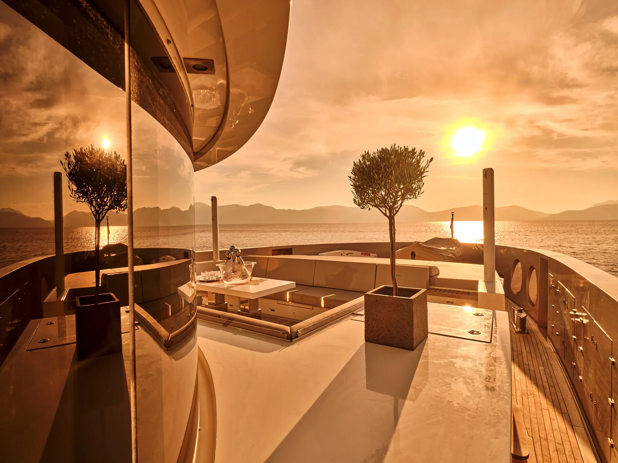 Main deck VIP suite offering expansive 180-degree panoramic views