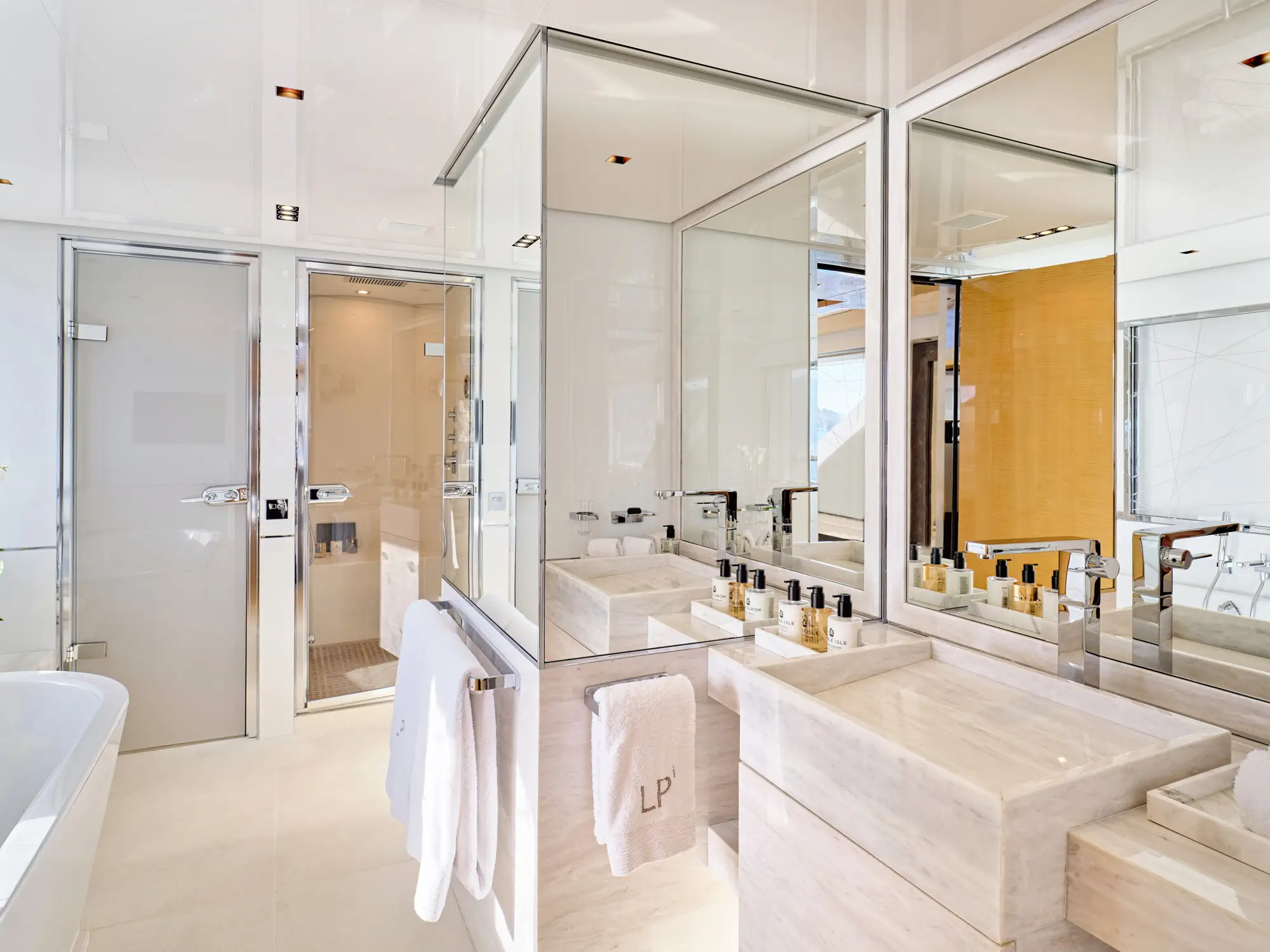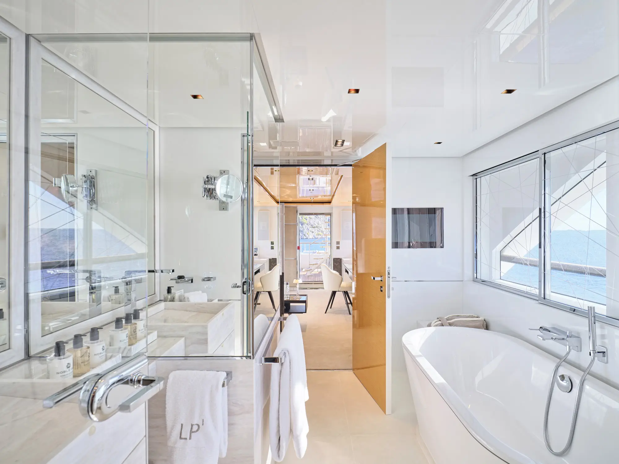 Generous ceiling height for a spacious and open feel throughout the yacht