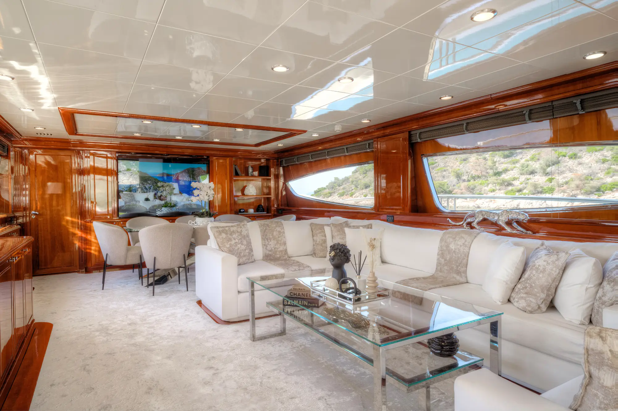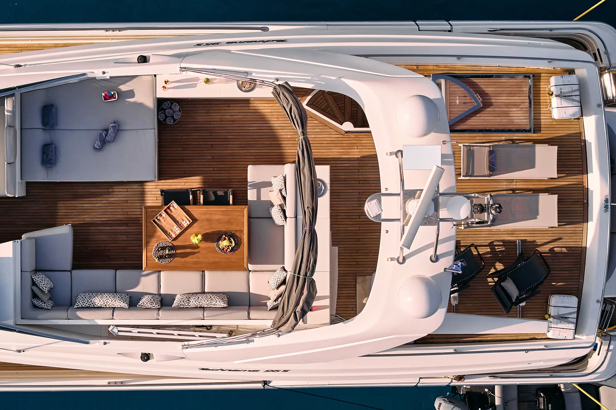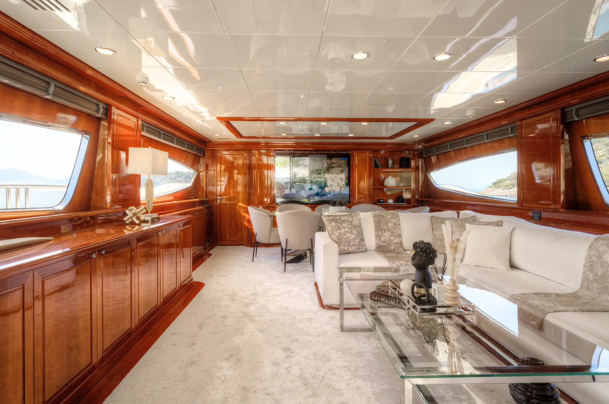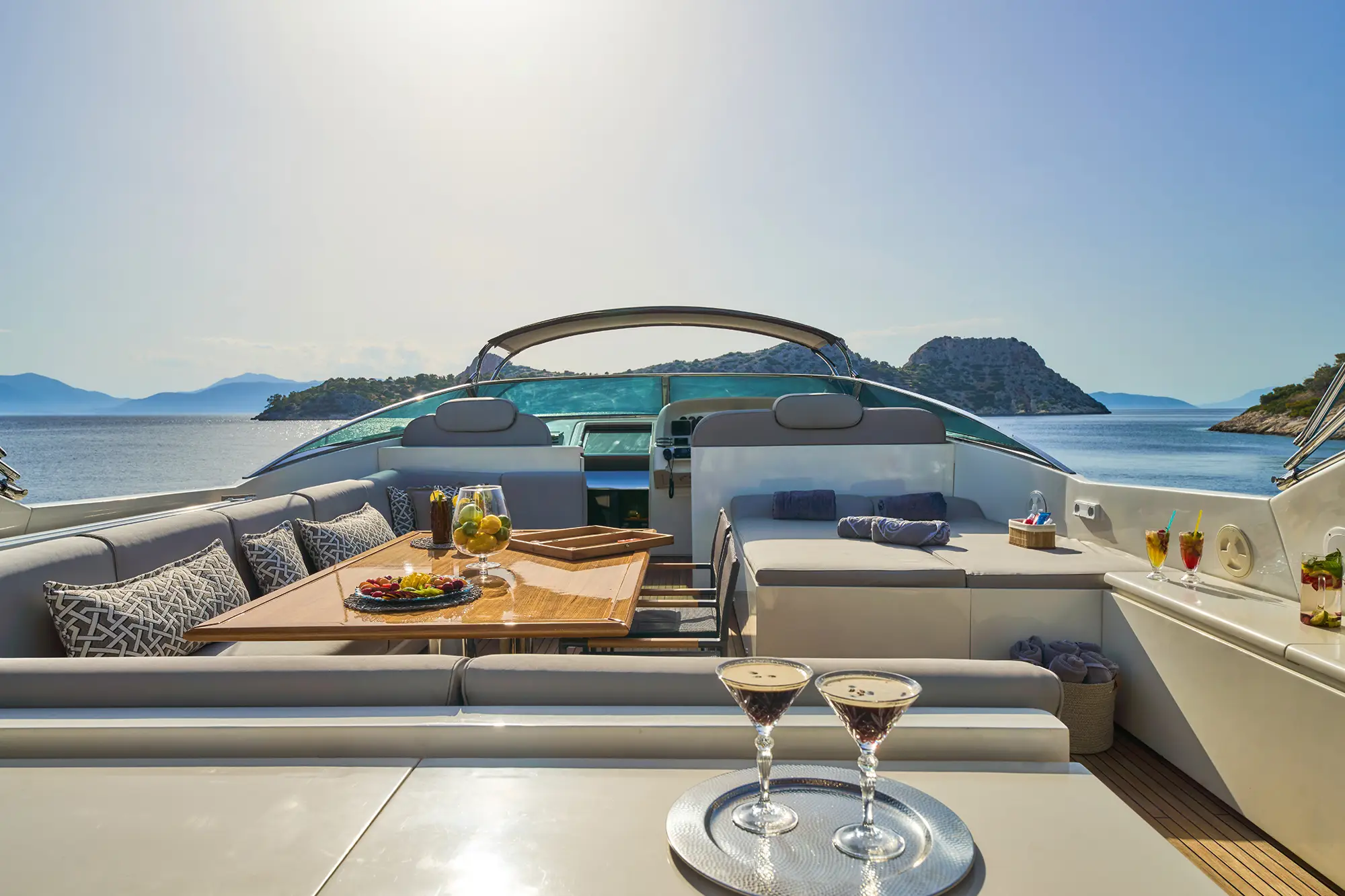 From the moment you step on board, DIVINE defines a refined cruising experience. Her interiors feature elegant silver accents, brand-new carpets throughout, and luxury amenities that elevate every detail of your stay. The main salon, enhanced with upgraded décor and a sleek modern dining table for 10, offers the perfect space to gather, unwind, and savor every moment.