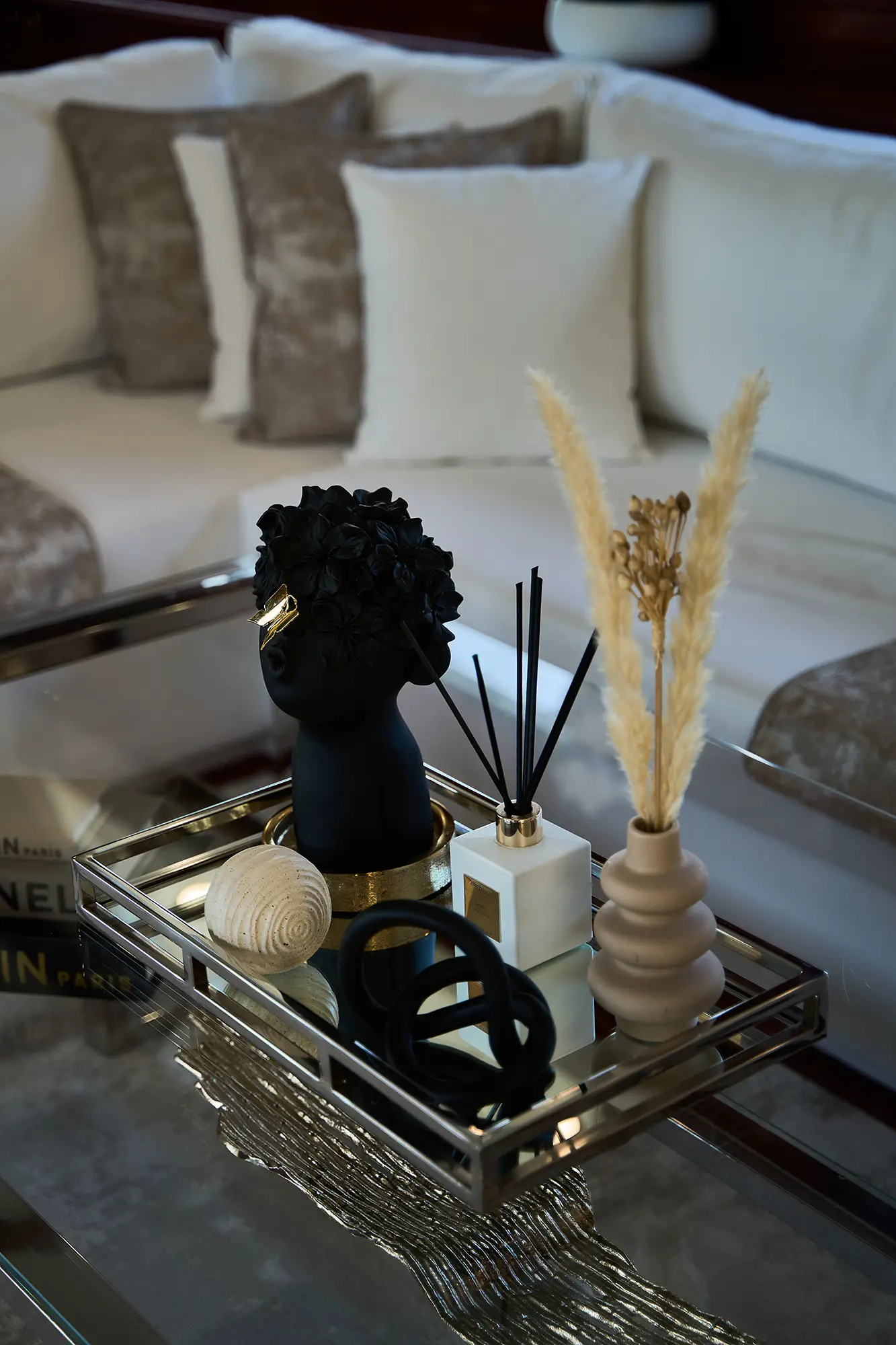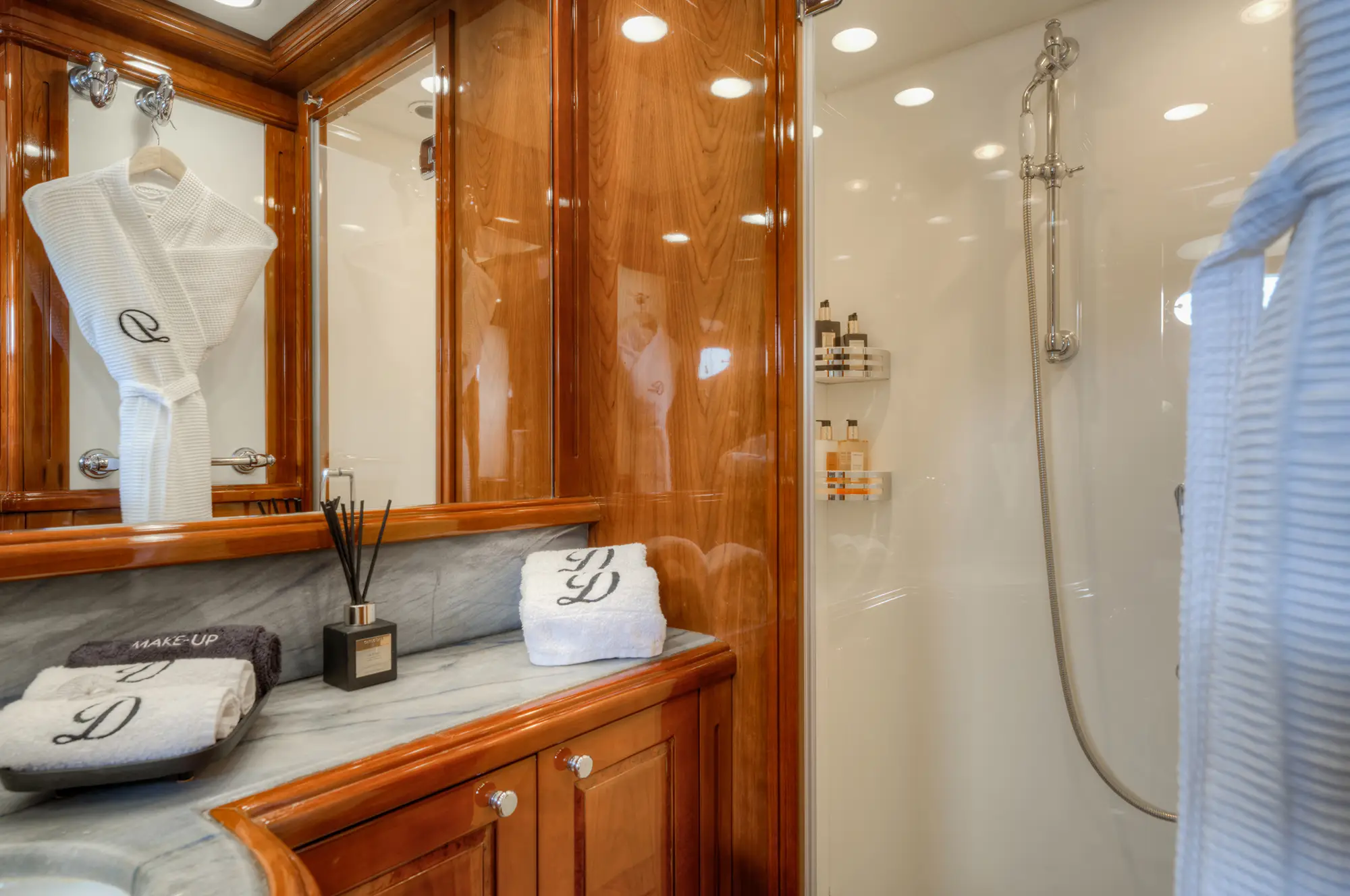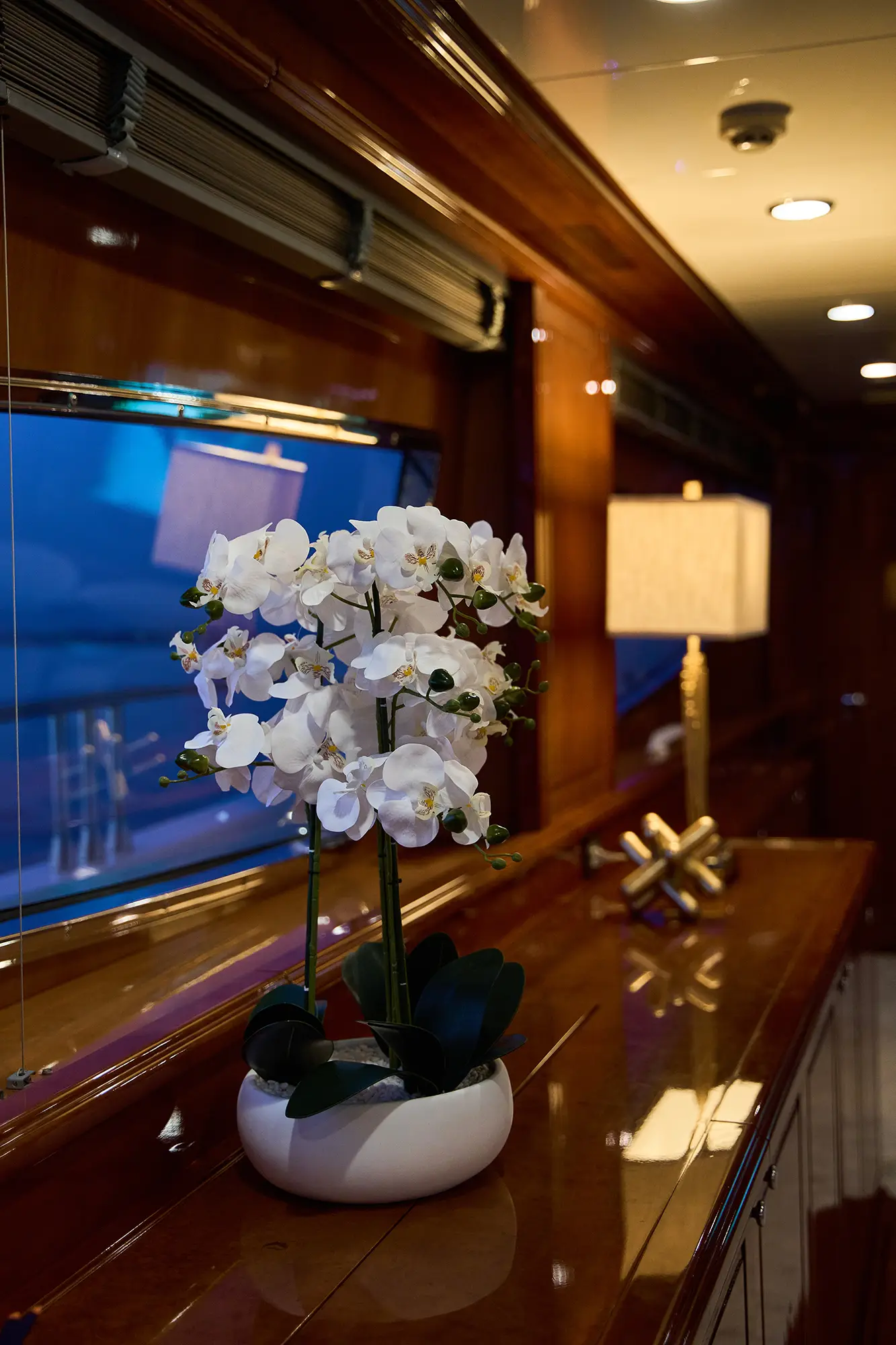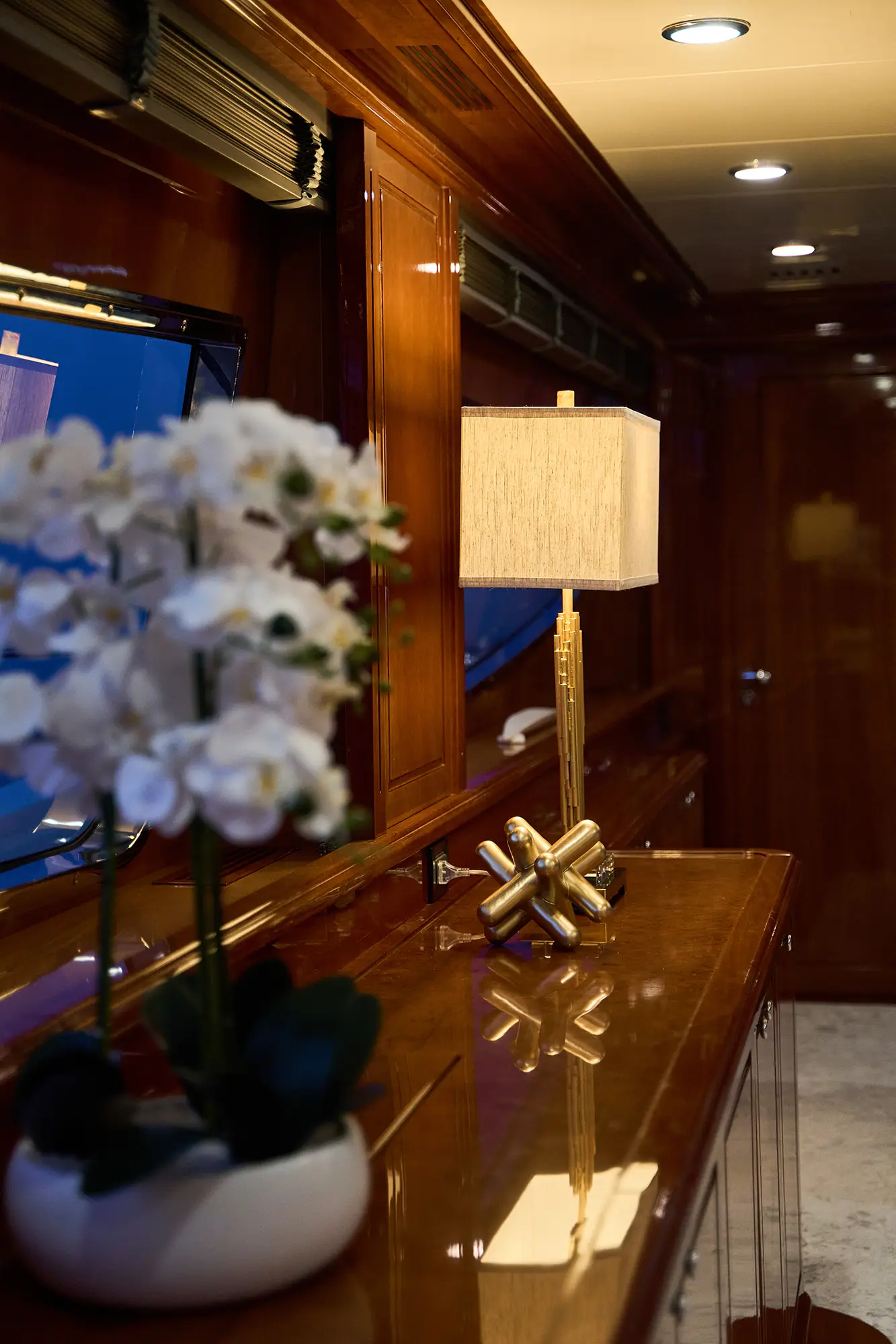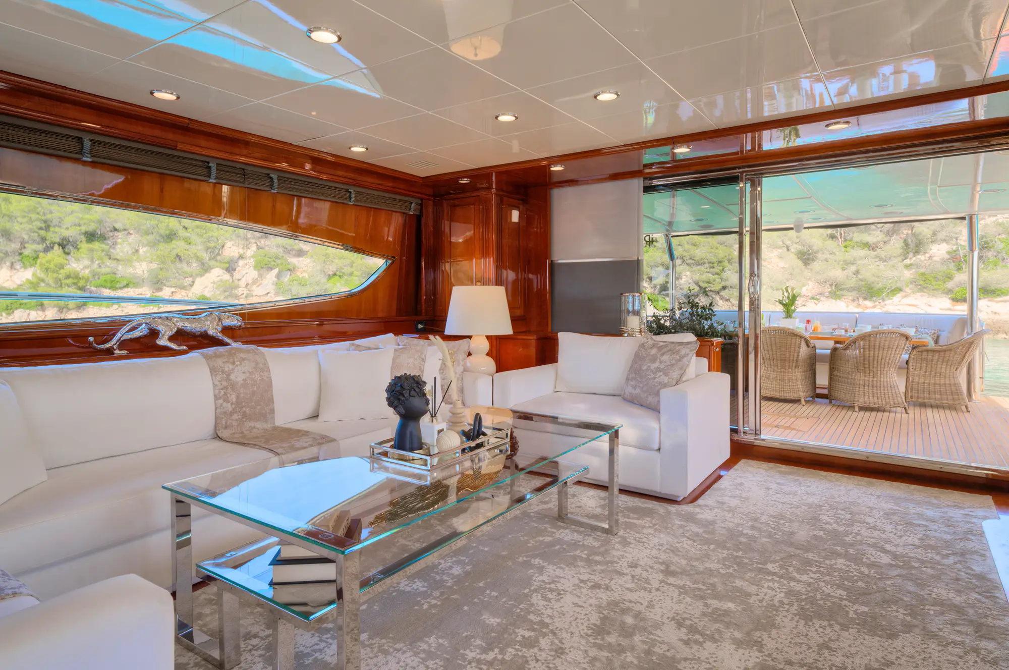 From the moment you step on board, DIVINE defines a refined cruising experience. Her interiors feature elegant silver accents, brand-new carpets throughout, and luxury amenities that elevate every detail of your stay. The main salon, enhanced with upgraded décor and a sleek modern dining table for 10, offers the perfect space to gather, unwind, and savor every moment.
