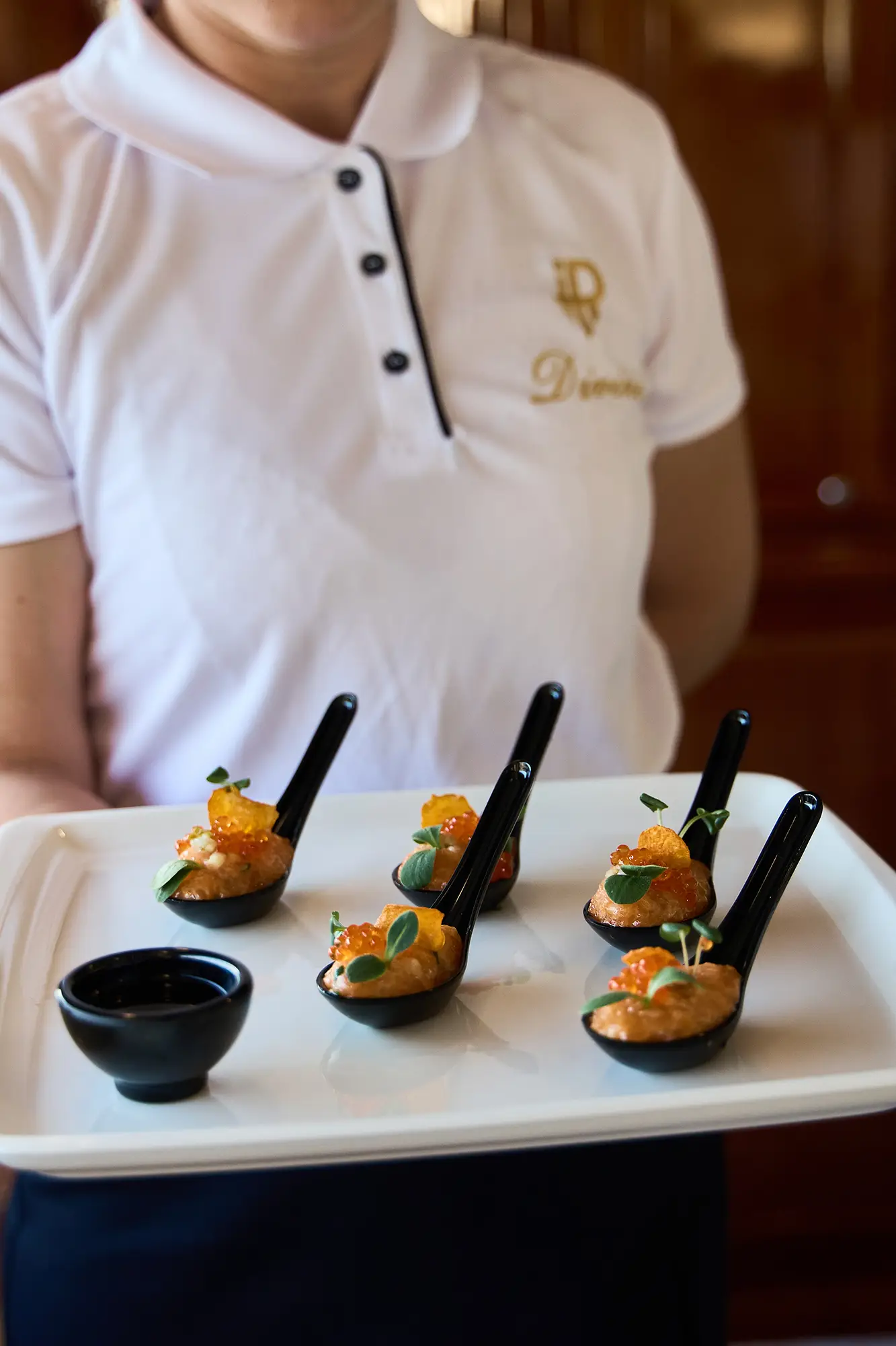 A professional crew of six is dedicated to making every moment effortless. From gourmet meals to personalized itineraries, their attention to detail ensures your charter experience feels tailored, relaxed, and truly divine.