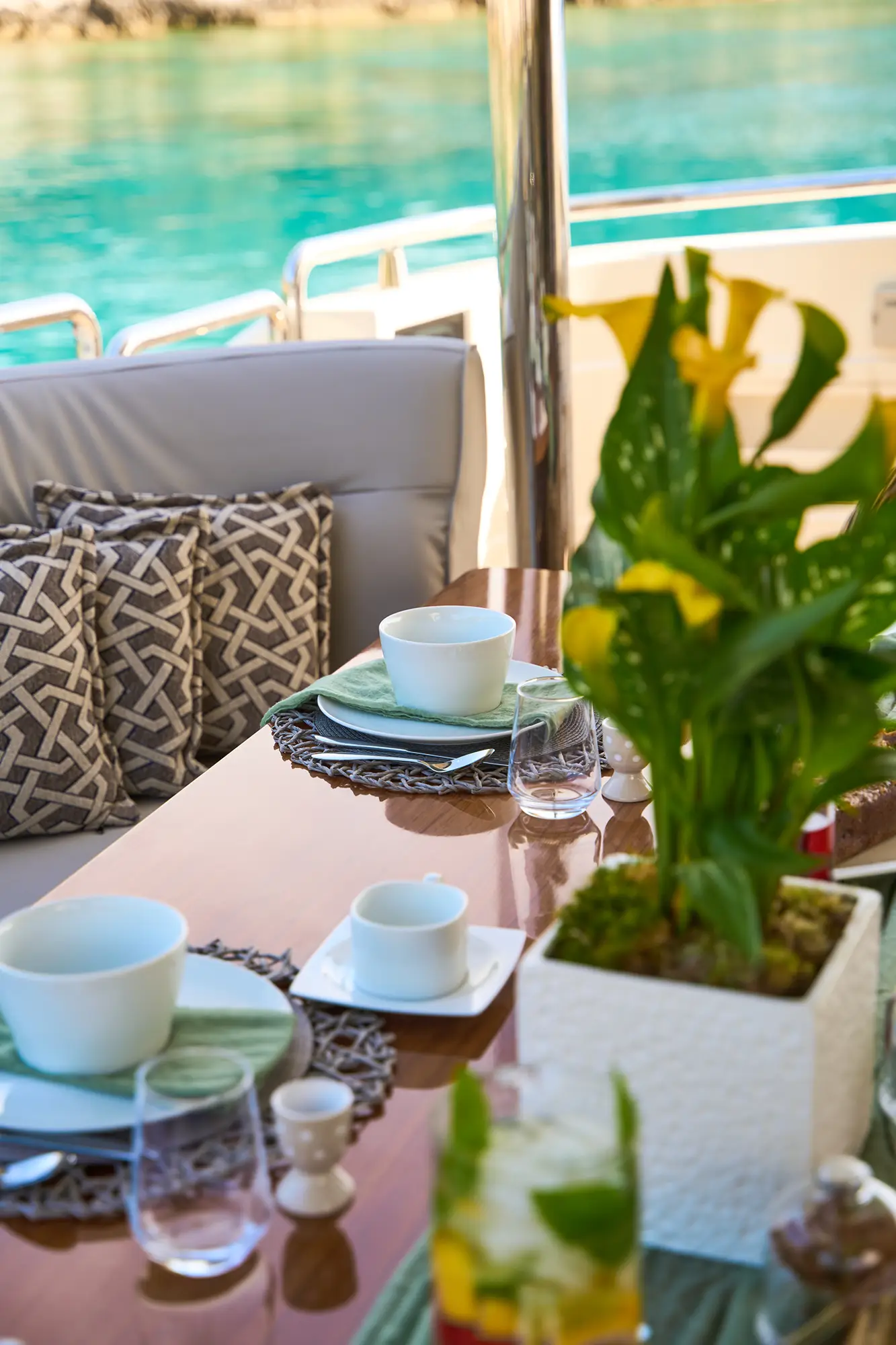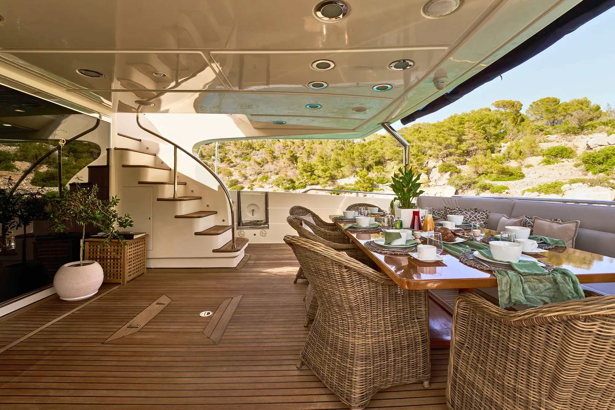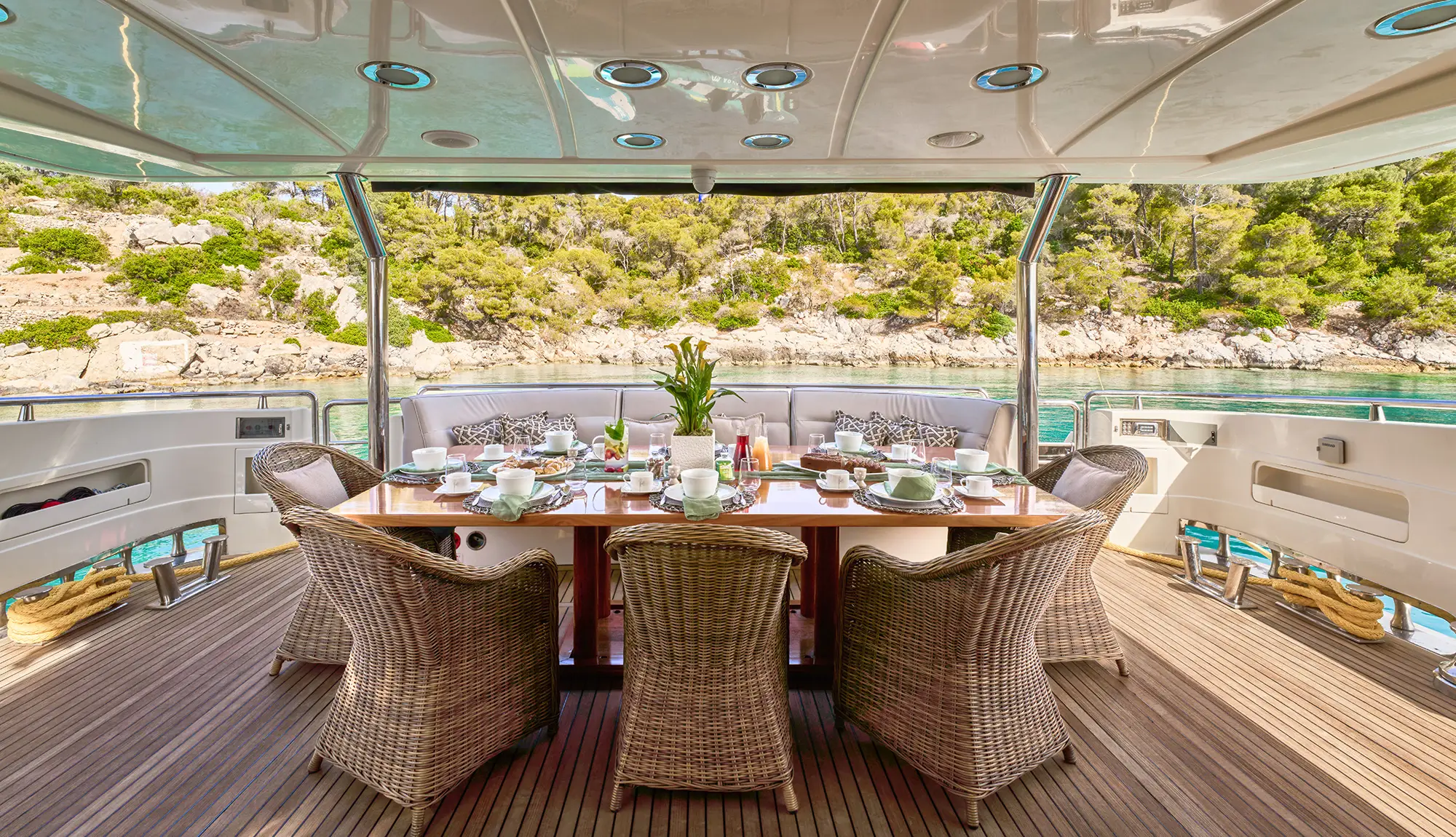 Dining Table for 12 Guests: Located on the aft deck area for delightful dining experiences