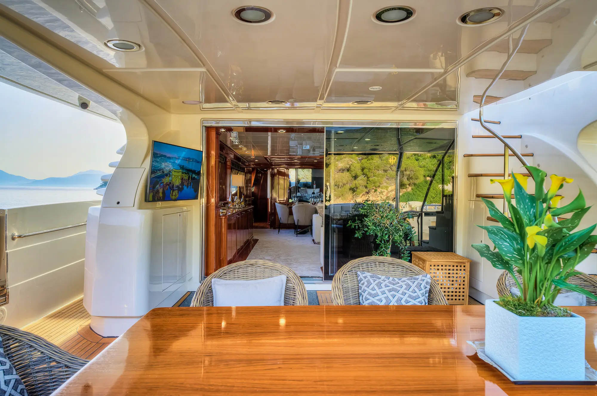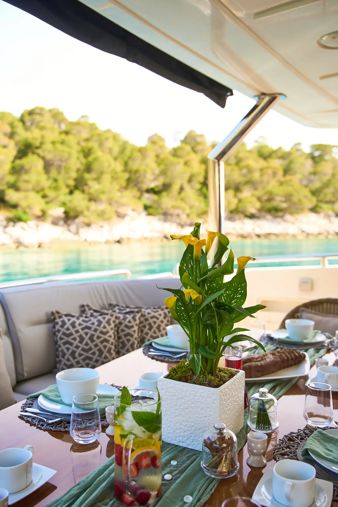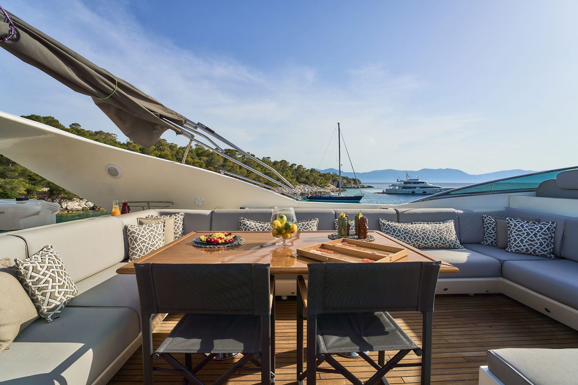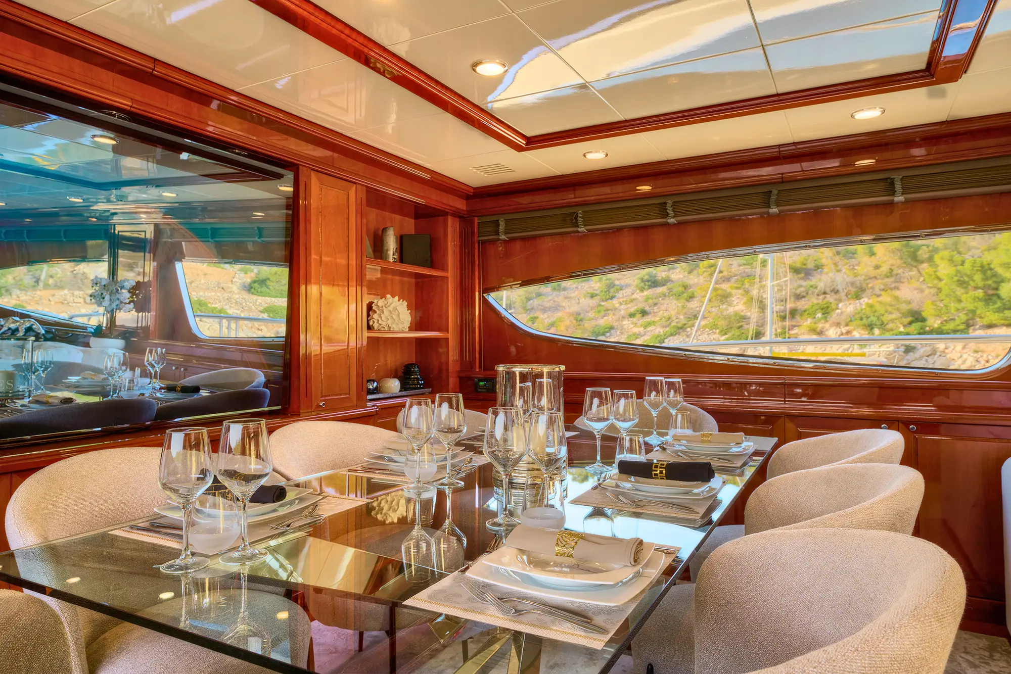 Dining Table for 12 Guests: Located on the aft deck area for delightful dining experiences