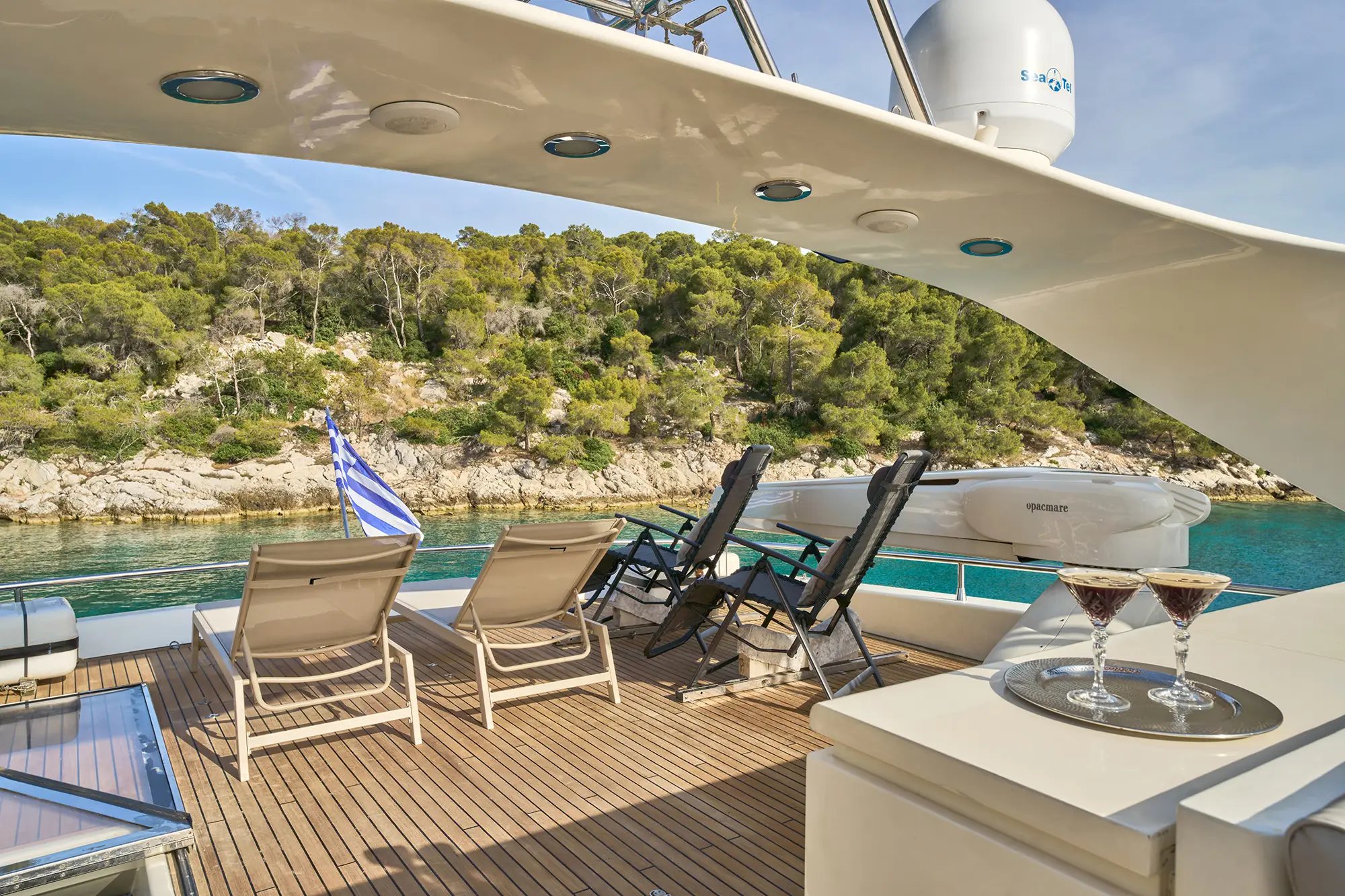 Samsung SMART TVs in all cabins, Satellite television, Outdoor TV, Bluetooth sound system connection, PlayStation 5, Netflix, Cosmote TV, interphone system