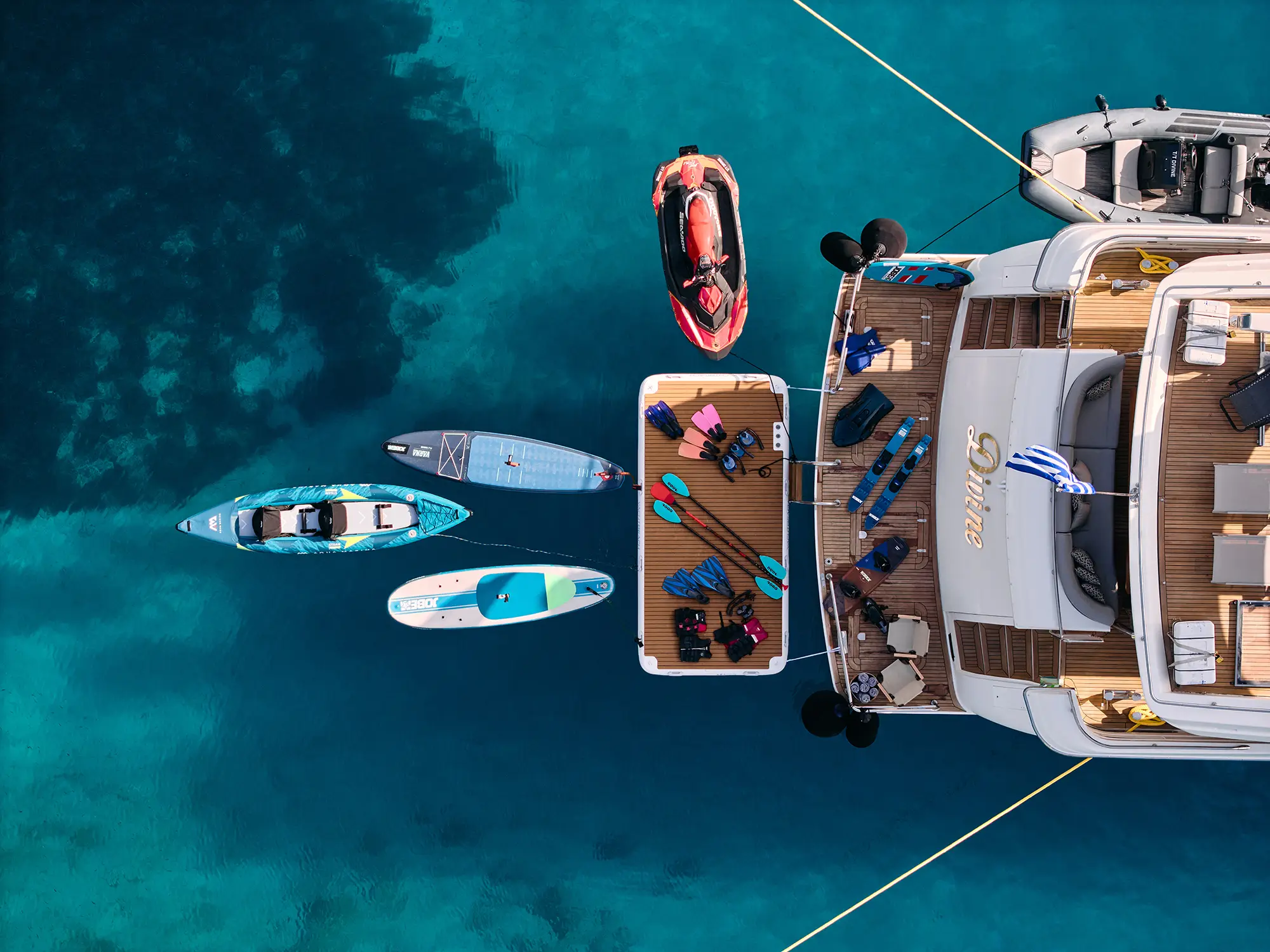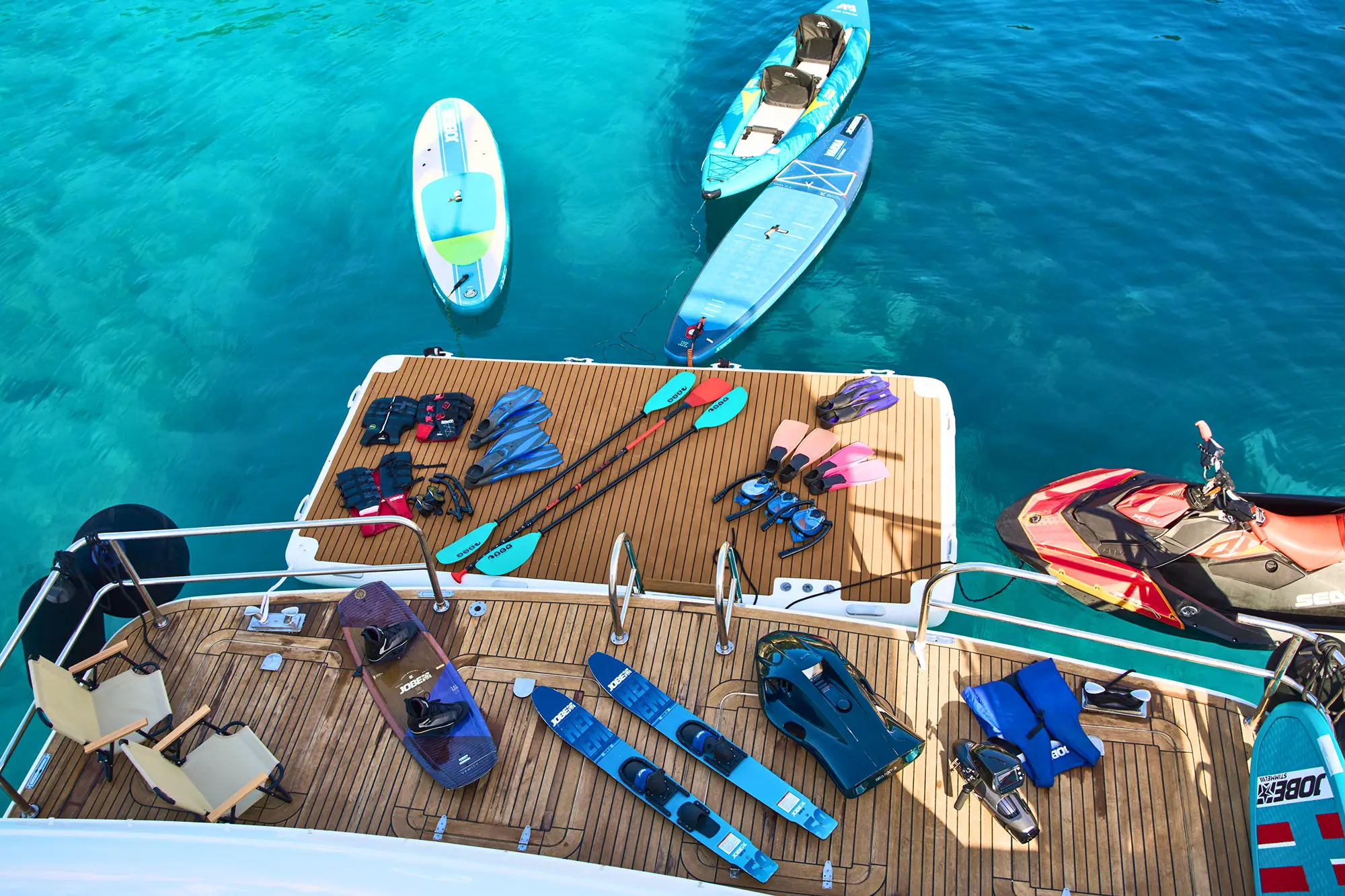 Adventure lovers will delight in the expanded 2025 water toy selection, offering endless ways to enjoy the sea—from jet skiing and paddleboarding to towed inflatables and more. High-speed connectivity is ensured even in remote waters, thanks to Starlink internet.