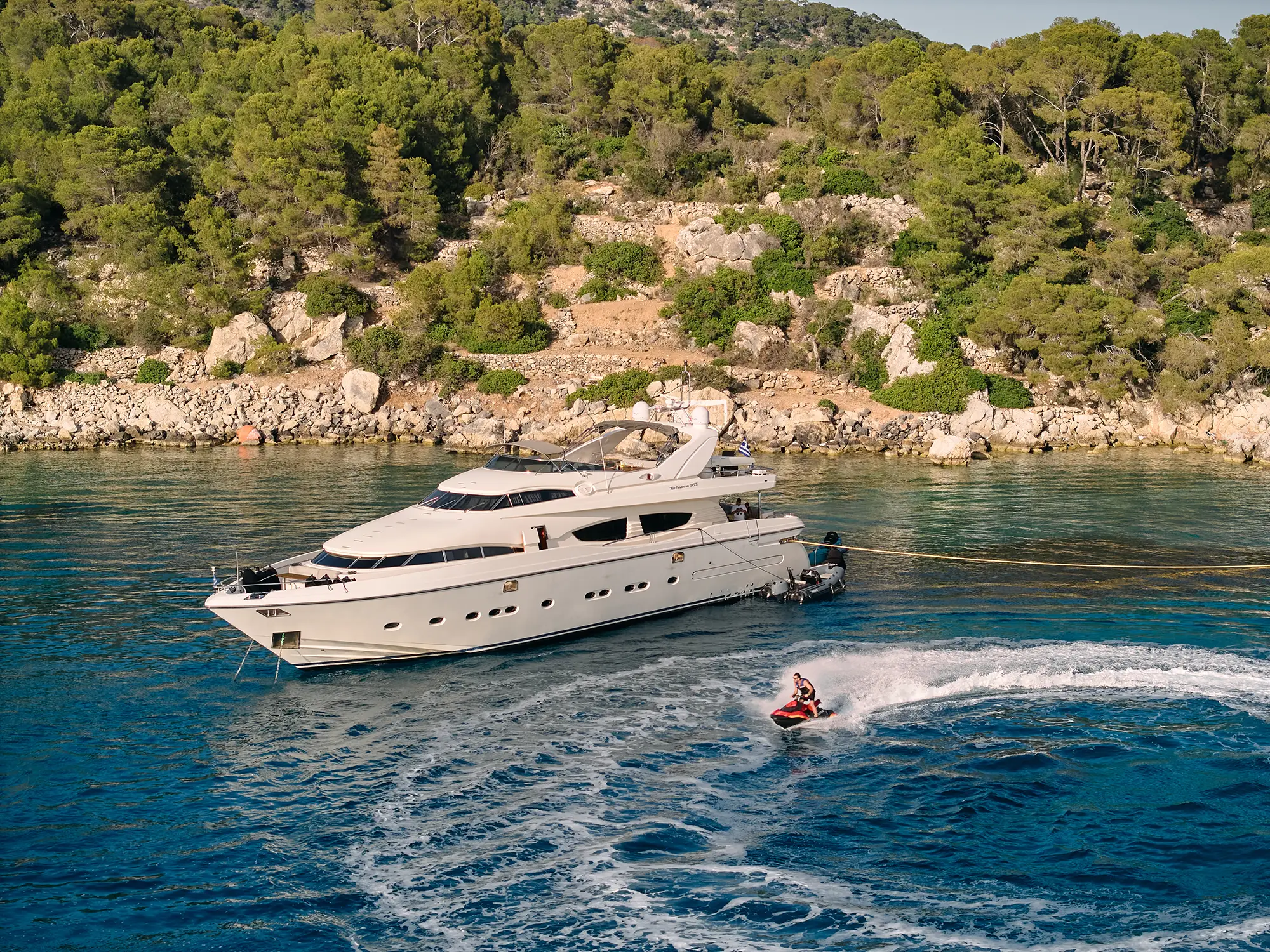 The 100ft M/Y DIVINE, a stunning Posillipo Technema 95S, invites you to a world where timeless elegance meets modern sophistication. Recently completed, her extensive 2025 refit has transformed DIVINE into a vessel of unparalleled luxury, crafted for guests who seek effortless indulgence and unforgettable moments at sea.