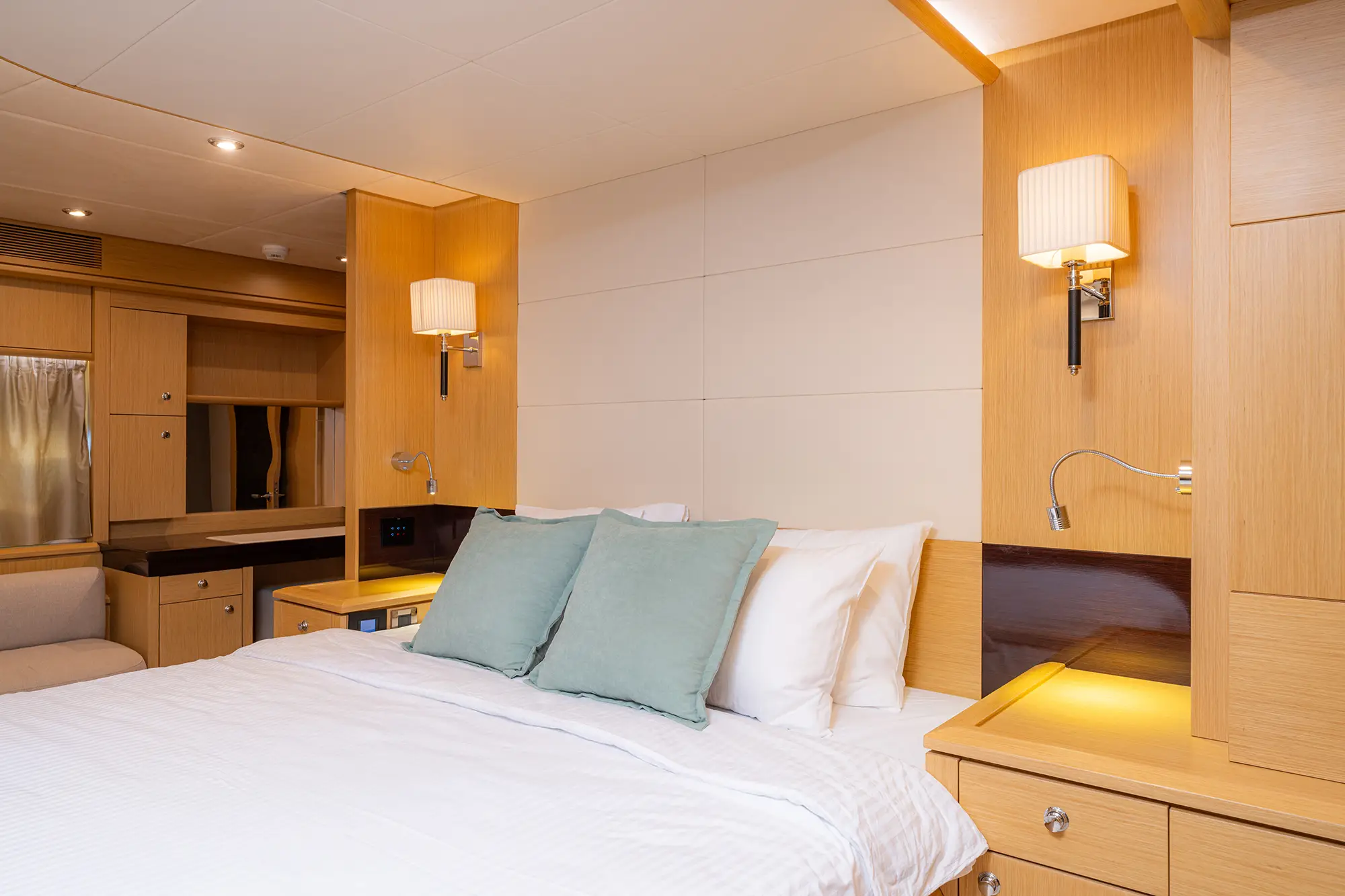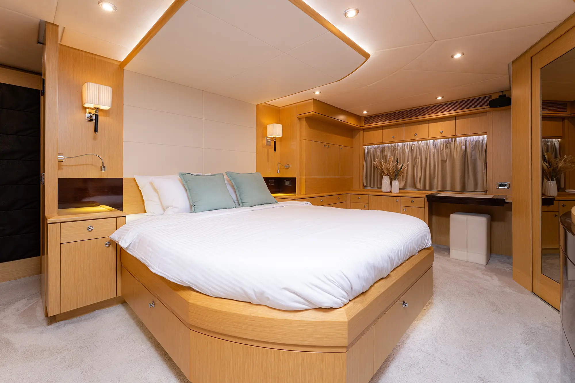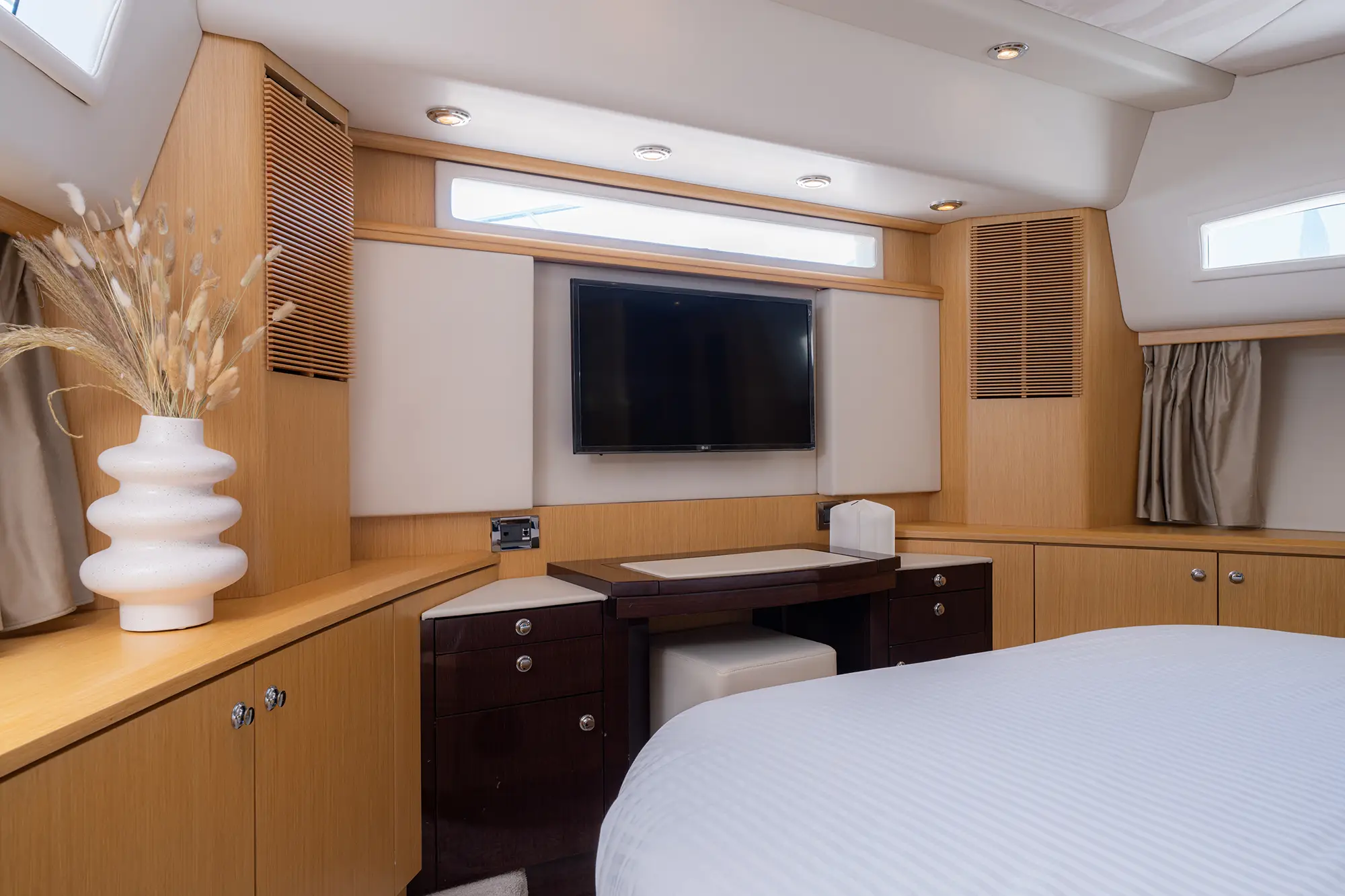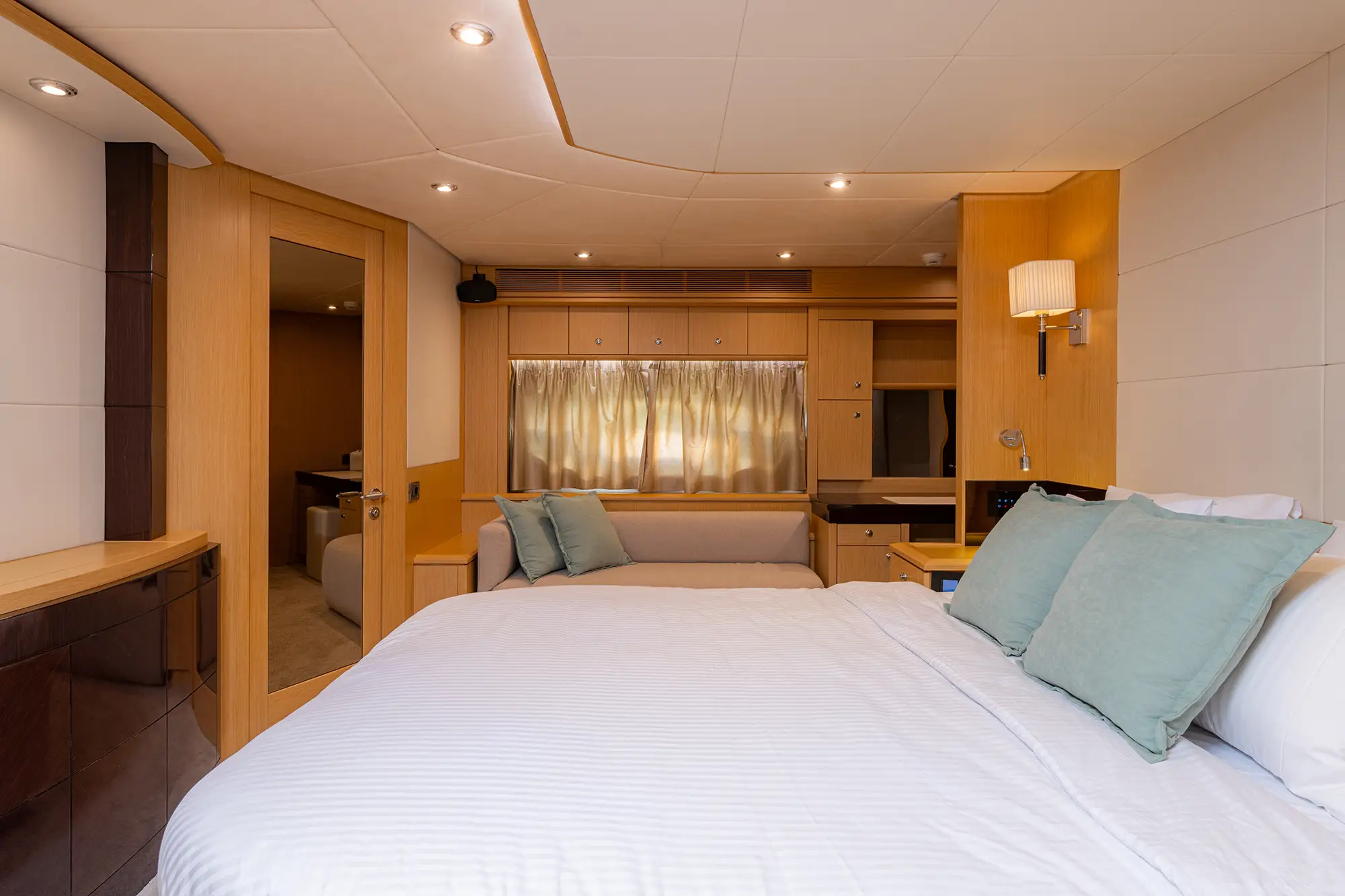 STELA 117 boasts **four elegantly appointed cabins**, including a luxurious Master suite, a VIP cabin, and a twin suite that can be converted into a double upon request. She comfortably accommodates up to 8 guests, making her perfect for both intimate getaways and larger gatherings.