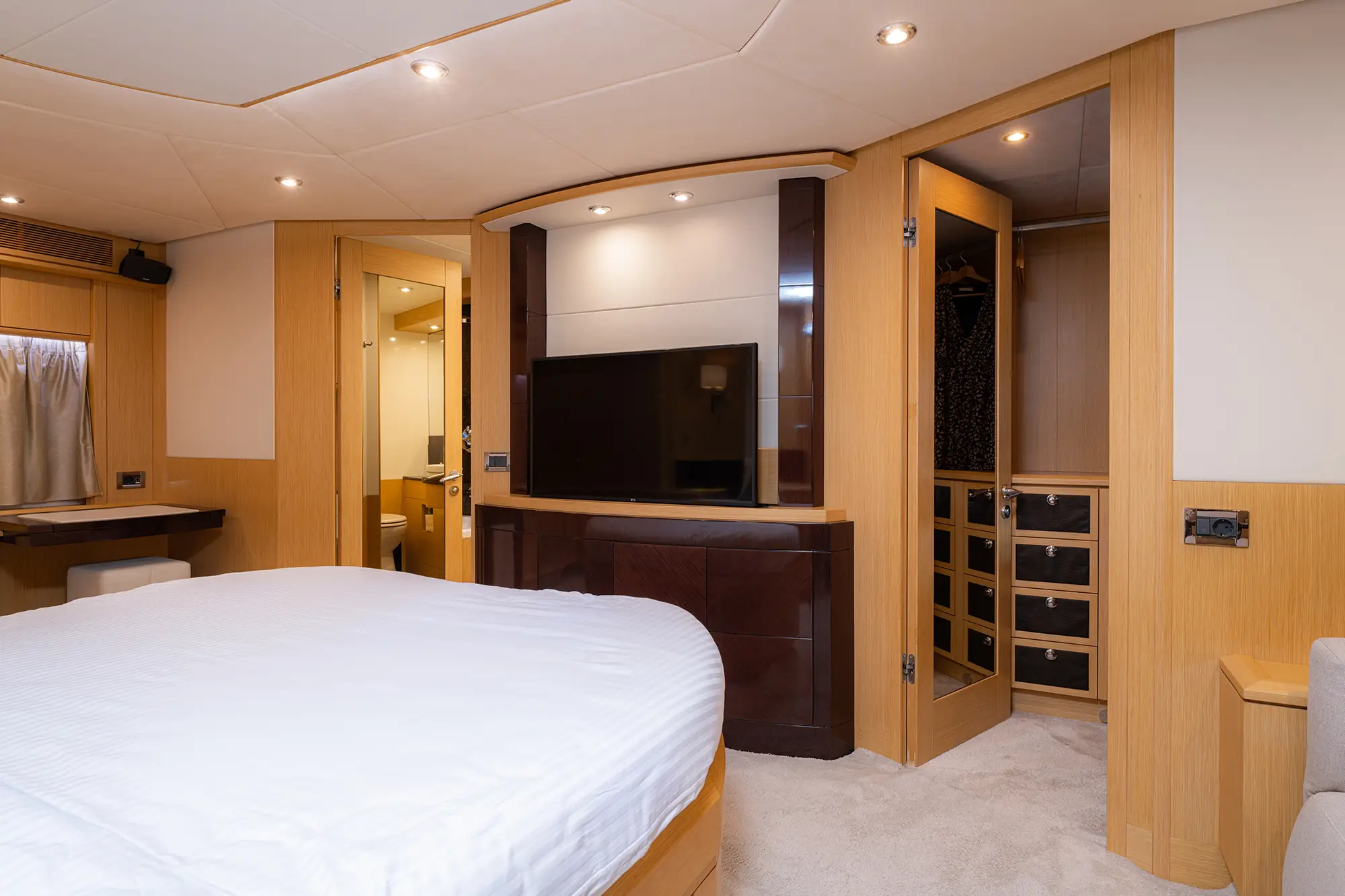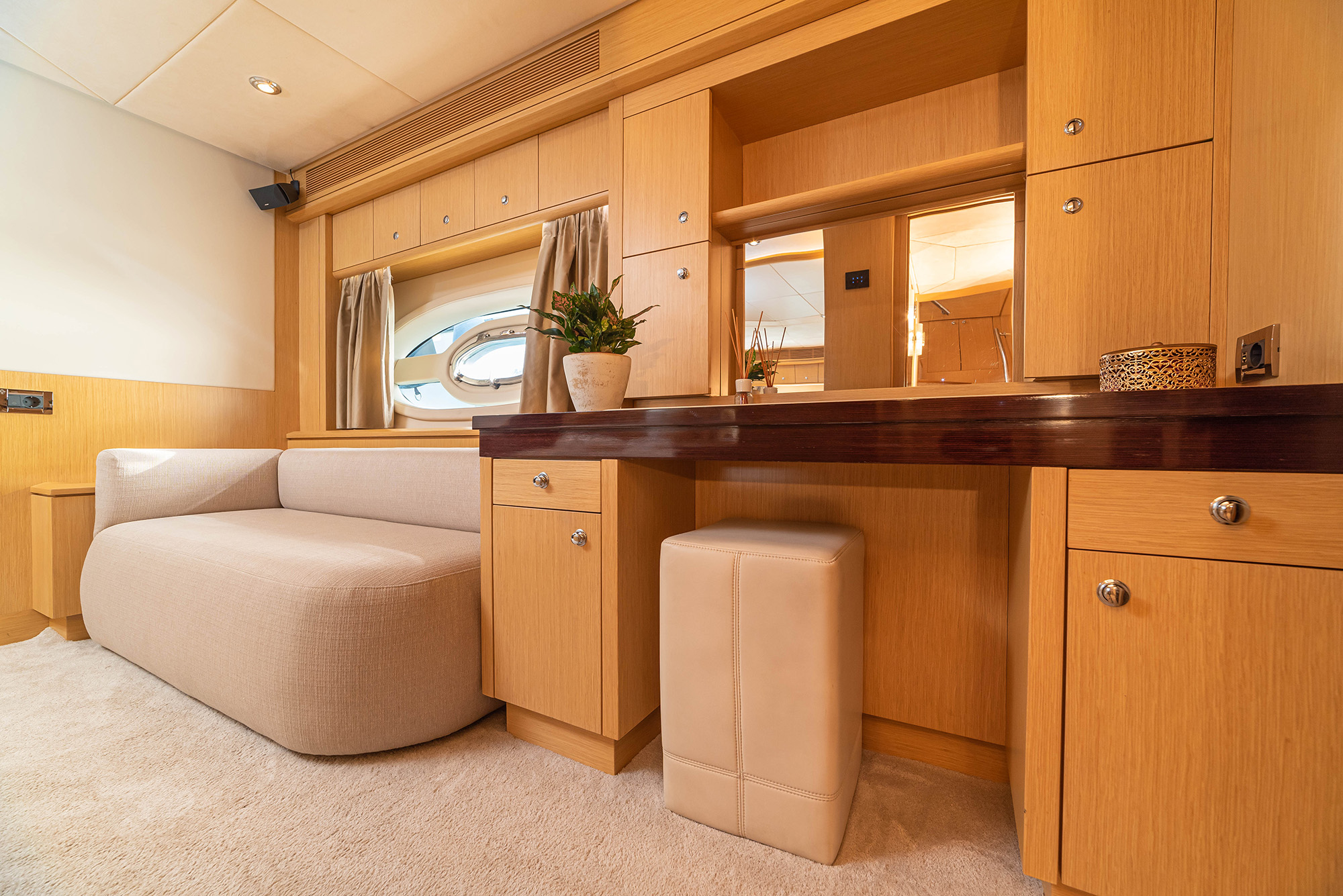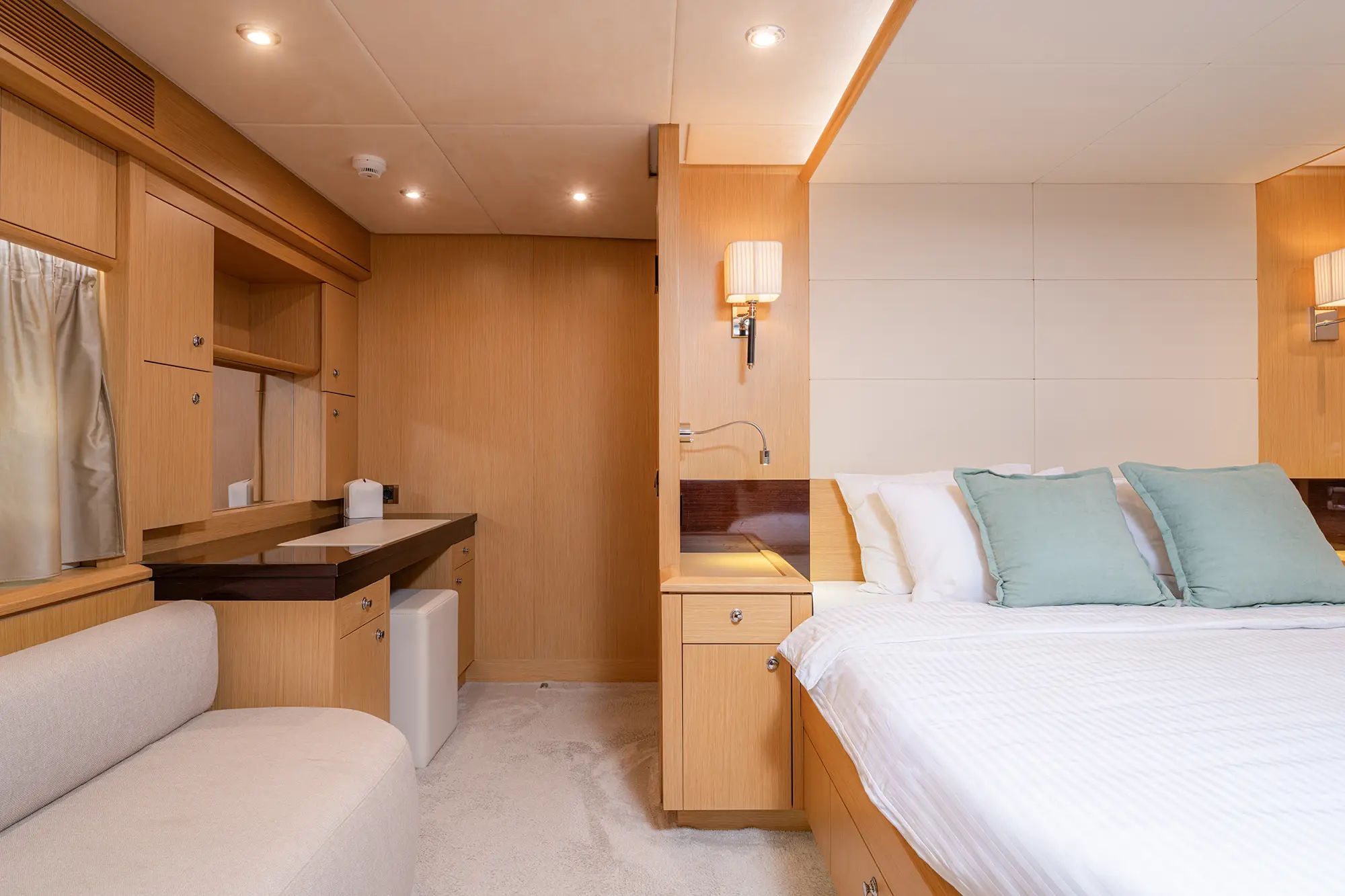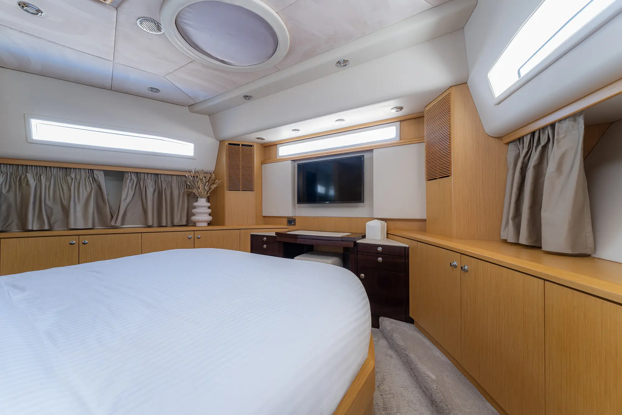 STELA 117 boasts **four elegantly appointed cabins**, including a luxurious Master suite, a VIP cabin, and a twin suite that can be converted into a double upon request. She comfortably accommodates up to 8 guests, making her perfect for both intimate getaways and larger gatherings.