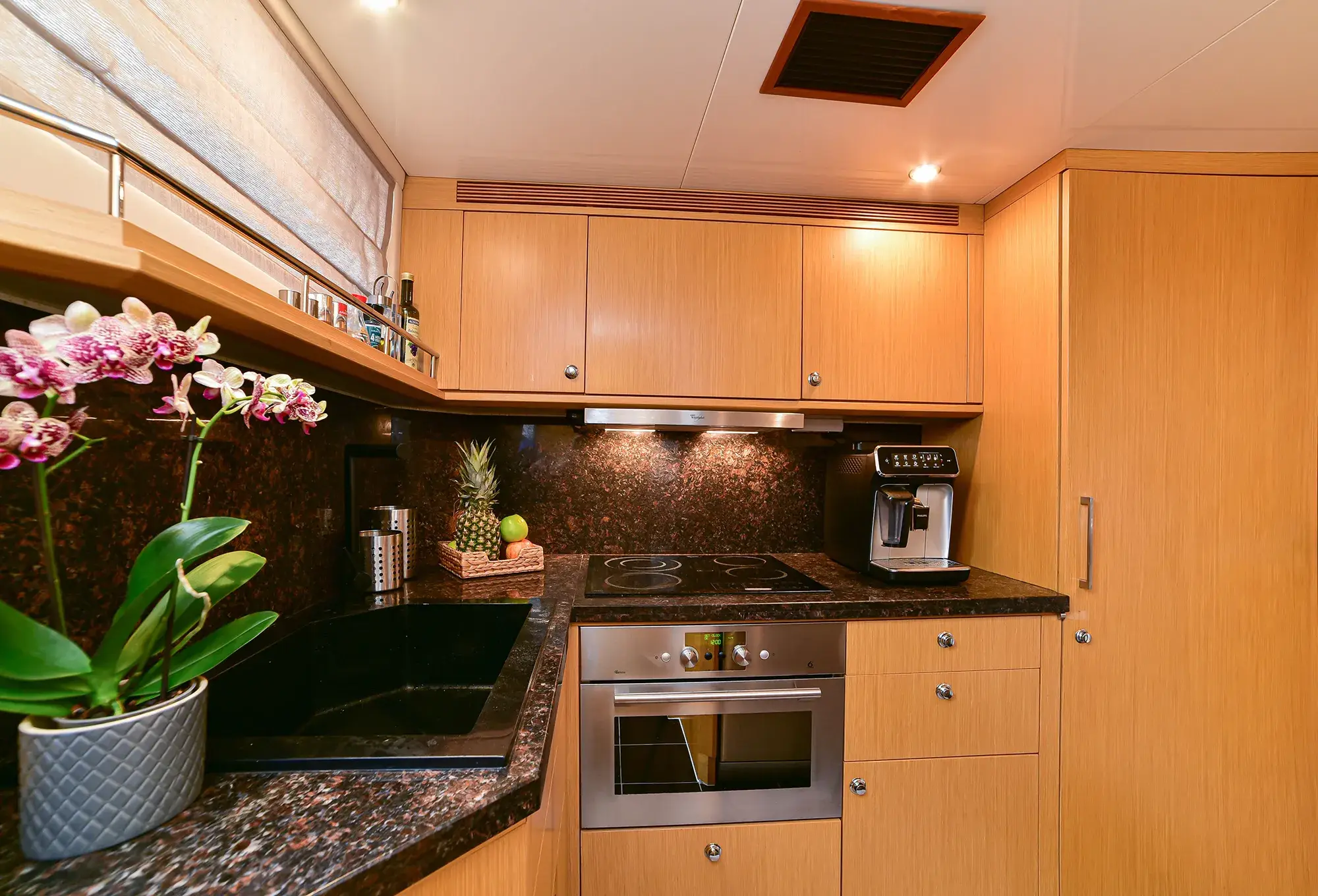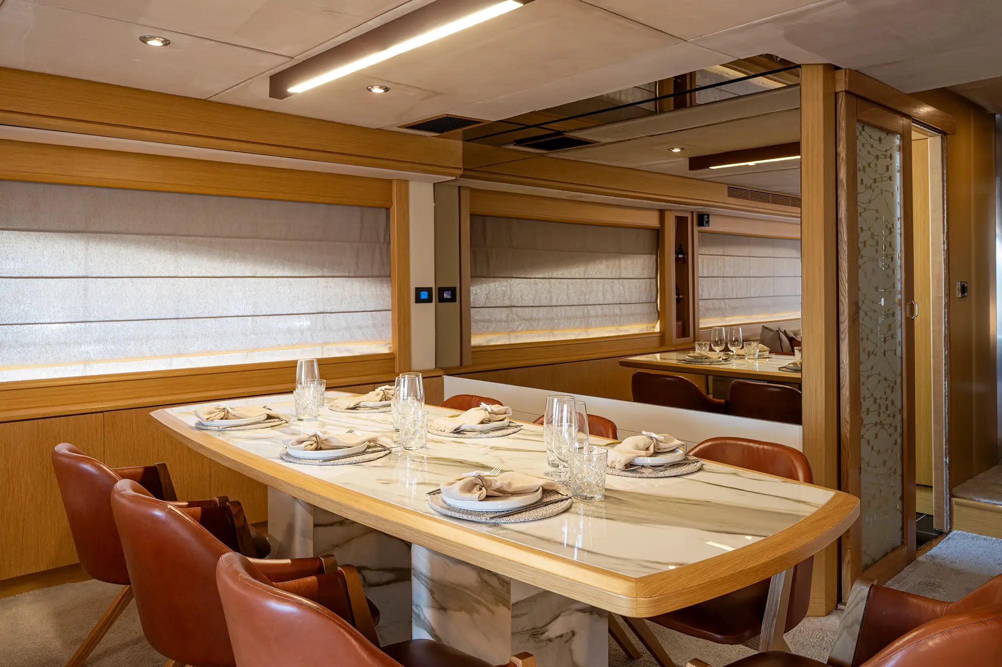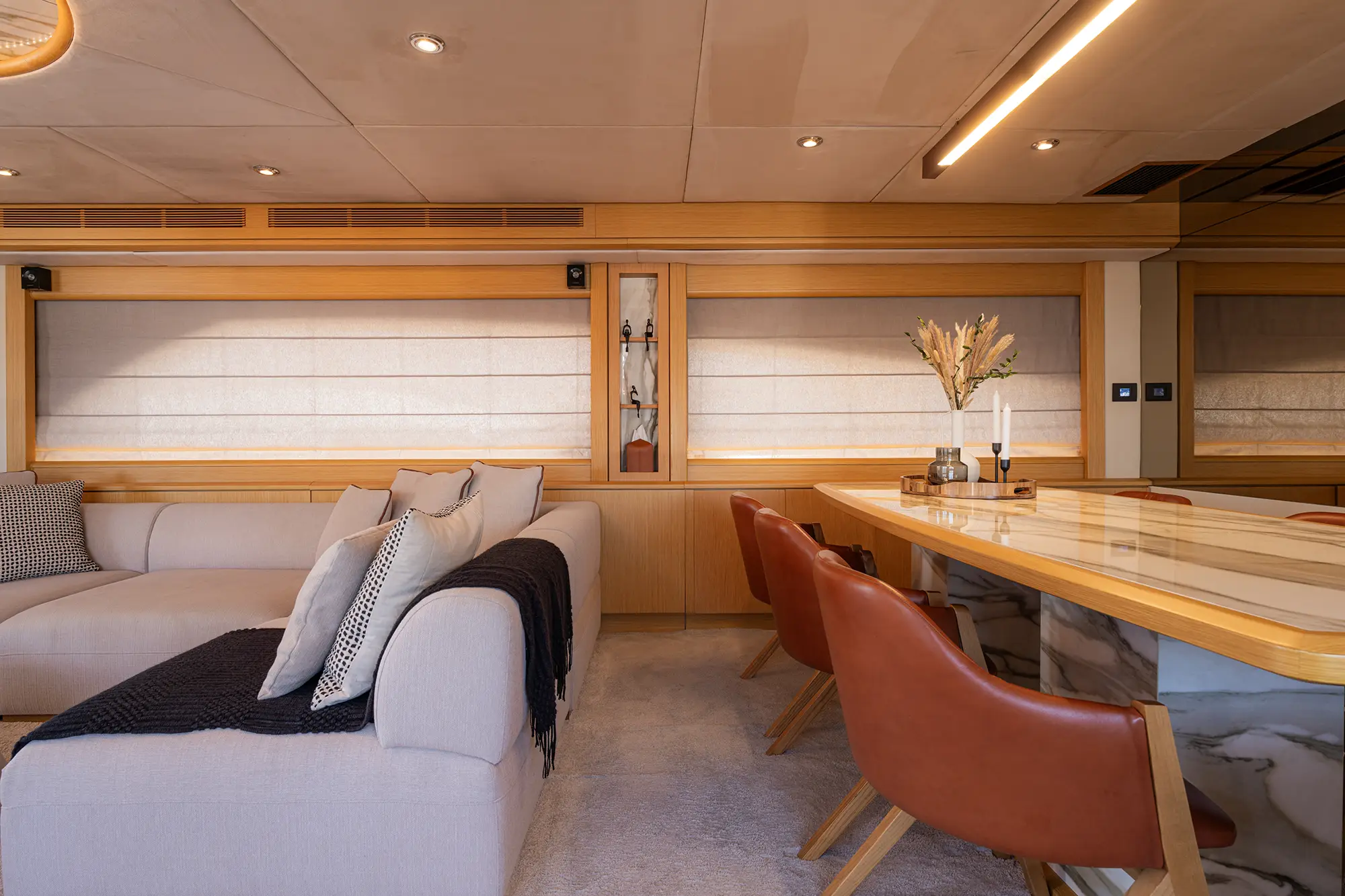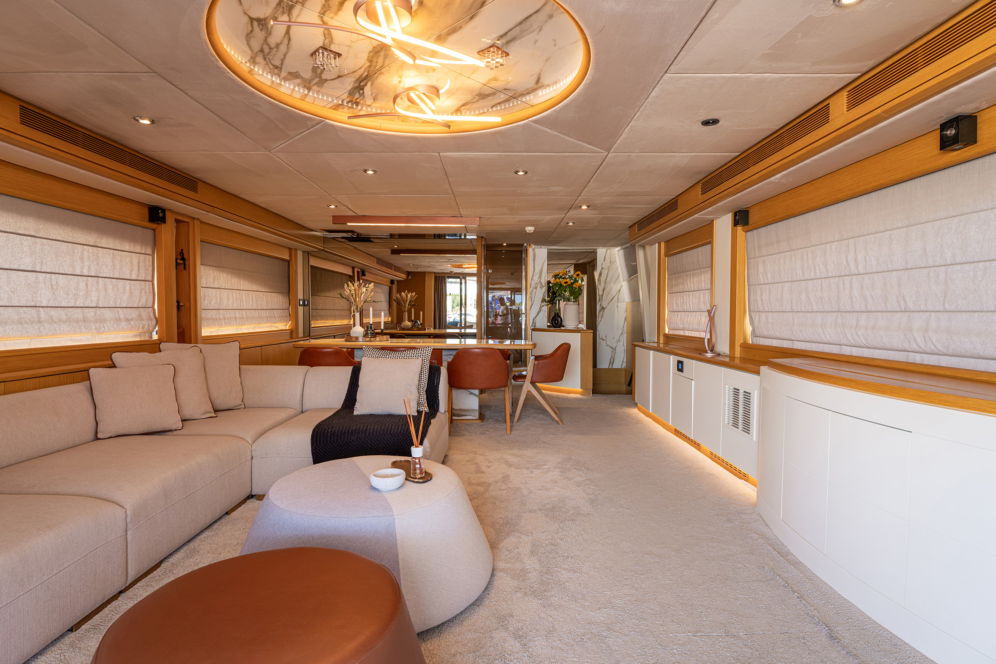 STELA 117 boasts **four elegantly appointed cabins**, including a luxurious Master suite, a VIP cabin, and a twin suite that can be converted into a double upon request. She comfortably accommodates up to 8 guests, making her perfect for both intimate getaways and larger gatherings.