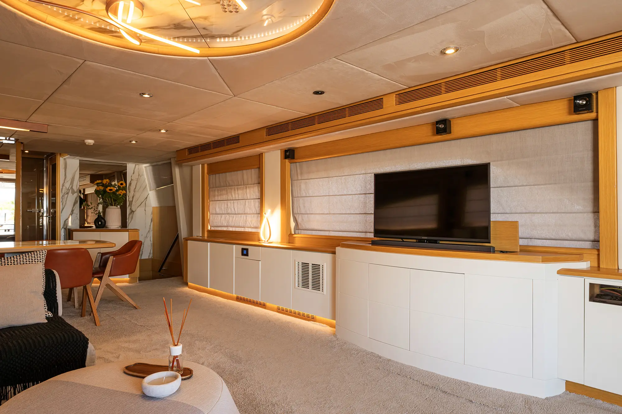 Guests will be captivated by STELA 117’s modern design, featuring a Jacuzzi on the Fly Bridge, offering a perfect spot to unwind while soaking in the sun or enjoying breathtaking views. With ample options for sunbathing or finding shade, every moment onboard is designed for relaxation and enjoyment.