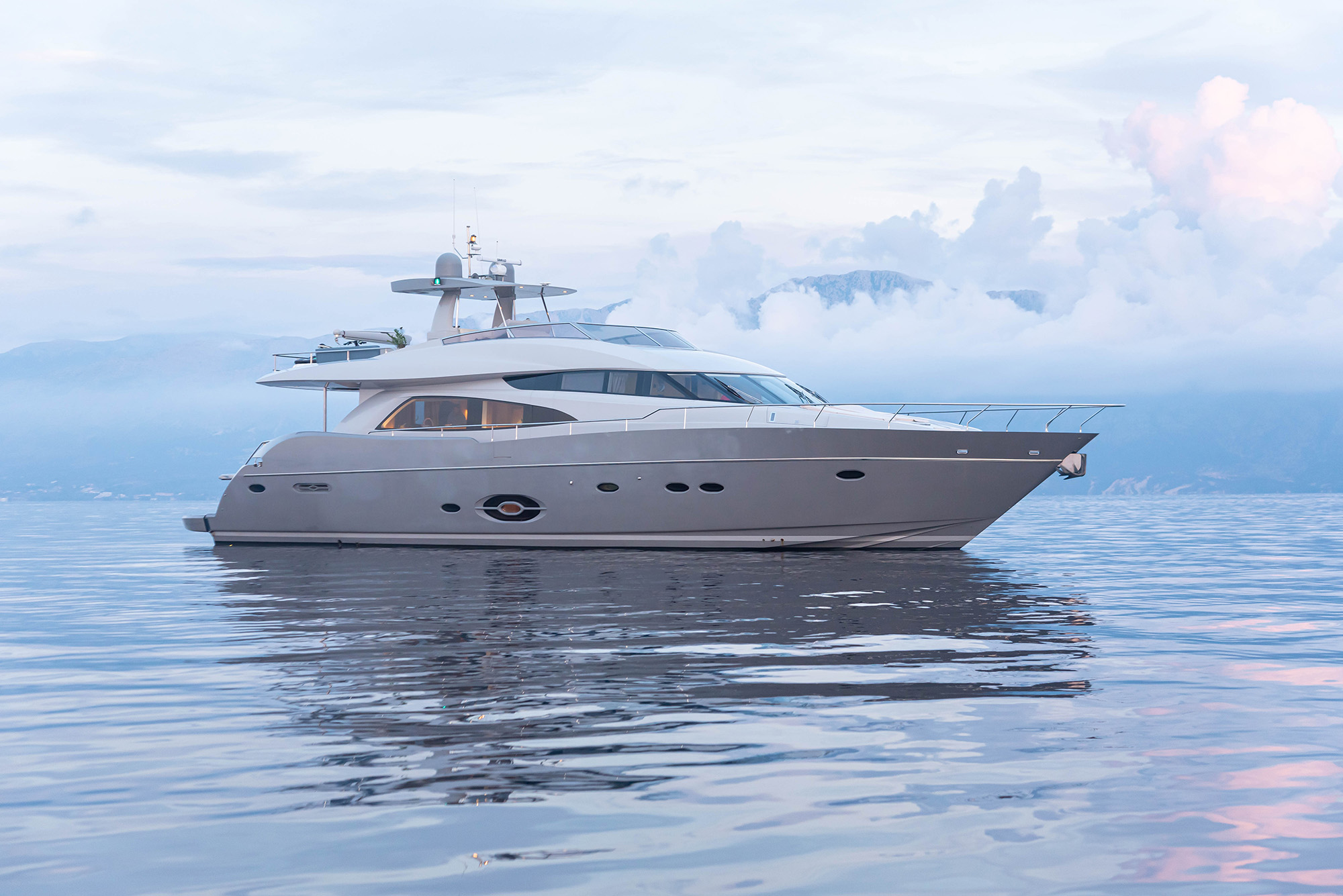 Introducing *STELA 117*, a stunning Royal Denship 86′ yacht, originally built in 2011 and beautifully refitted in 2024. Based in picturesque Preveza, near Lefkada Island, Greece, she is the ideal vessel for weekly charters exploring the enchanting Ionian Islands.